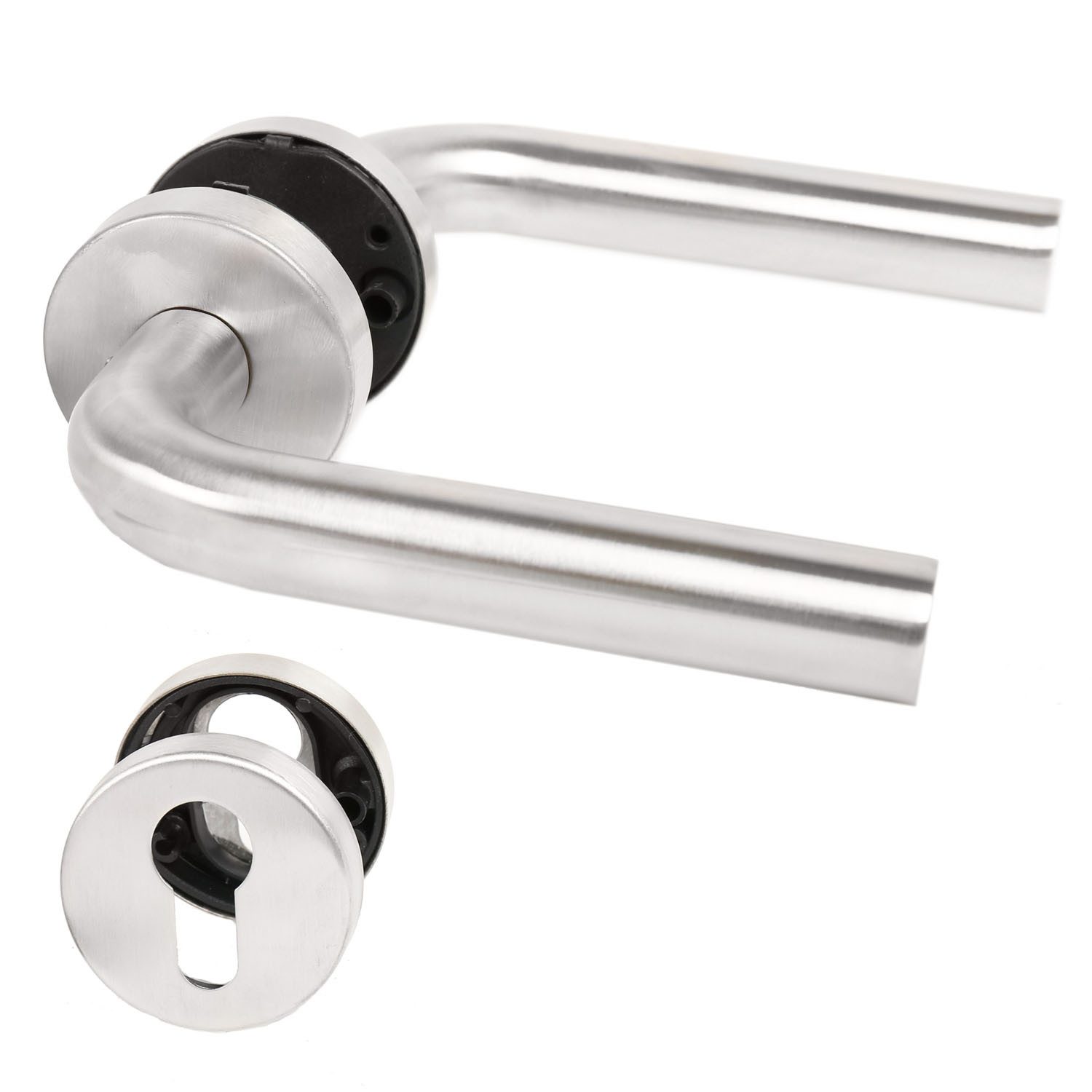 Wieder einmal präsentieren wir Ihnen ein neues Edelstahl Türdrücker Modell in der Ausführung matt gebürstet. Das Modell Sabina besticht durch seine zeitlos schöne Optik. Die Drücker sind immer für links und rechts verwendbar. Durch seinen Durchmesser von 20mm und seiner Длина von 135mm liegt der Griff optimal in der Hand. Durch die Befestigung mittels Durchzugschrauben und Hülsenmutter wird ein sehr hoher Halt an der Türe garantiert, da Schrauben nicht einfach raus brechen können. Die Rosetten mit Stütznocken werden auf die gleiche Weise montiert. Die Kunststoffunterkonstruktion verzeiht bei der Montage auch kleinere Fehler - so dass auch ungeübte Handwerker ohne größere Probleme die Türdrücker zu Hause installieren können. Entscheiden Sie einfach welche Rosetten - Form es für Sie sein soll. Sie haben die Wahl zwischen Buntbart ( Zimmertüren ), Profilzylinder ( Korridortüren) und WC - Bad ( mit Drehfunktion und Kindersicherung ). Warten Sie nicht länger und bestellen Sie schnell einfach und sicher Ihre Edelstahl Rosettengarnitur zum absoluten Vorzugspreis.