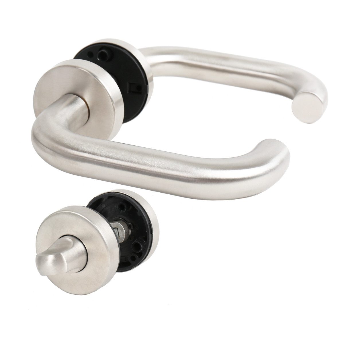 Mit dem Modell Cornelia bringt MS Beschläge® die nächste Rosettengarnitur zum einem günstigen Preis auf den Markt. Eine echt Edelstahl Türdrückergarnitur mit einer klassichen Griffform die nicht aus der Mode kommt. Ein weiterer Vorteil dieses Griffs ist, das durch die Rundungen keine Ecken und scharfen Kanten vorhanden sind. Wir liefern Ihnen selbstverständlich eine komplette Garnitur für eine Türe. Zum Lieferumfang gehören das Drückerpaar, die Schlüsselrosetten ( bei der WC Varinate, die WC Verriegelung), ein 8mm Vierkant, Durchzugsschrauben mit Hülsenmuttern und eine Bohrschablone. Damit steht der direkten Montage bei Ihnen zu Hause nichts mehr im Wege. Entschieden Sie ob sie eine normale Zimmertüre mit diesem Drücker bestücken wollen, dann entschieden Sie sich für die Buntbartrosette. Haben Sie ein Zylinderschloss in der Türe, dann nehmen Sie die Profilzylinder Rosette. Möchten Sie ihr Bad sicherer machen, dann nehmen Sie doch einfach unsere Garnitur fürs WC und Bad, und versperren Sie die WC Türe mit dem Schliessriegel der dem Lieferumfang zugehört. Bestellen Sie gleich Ihre neuen Türdrücker in unserem Shop.
