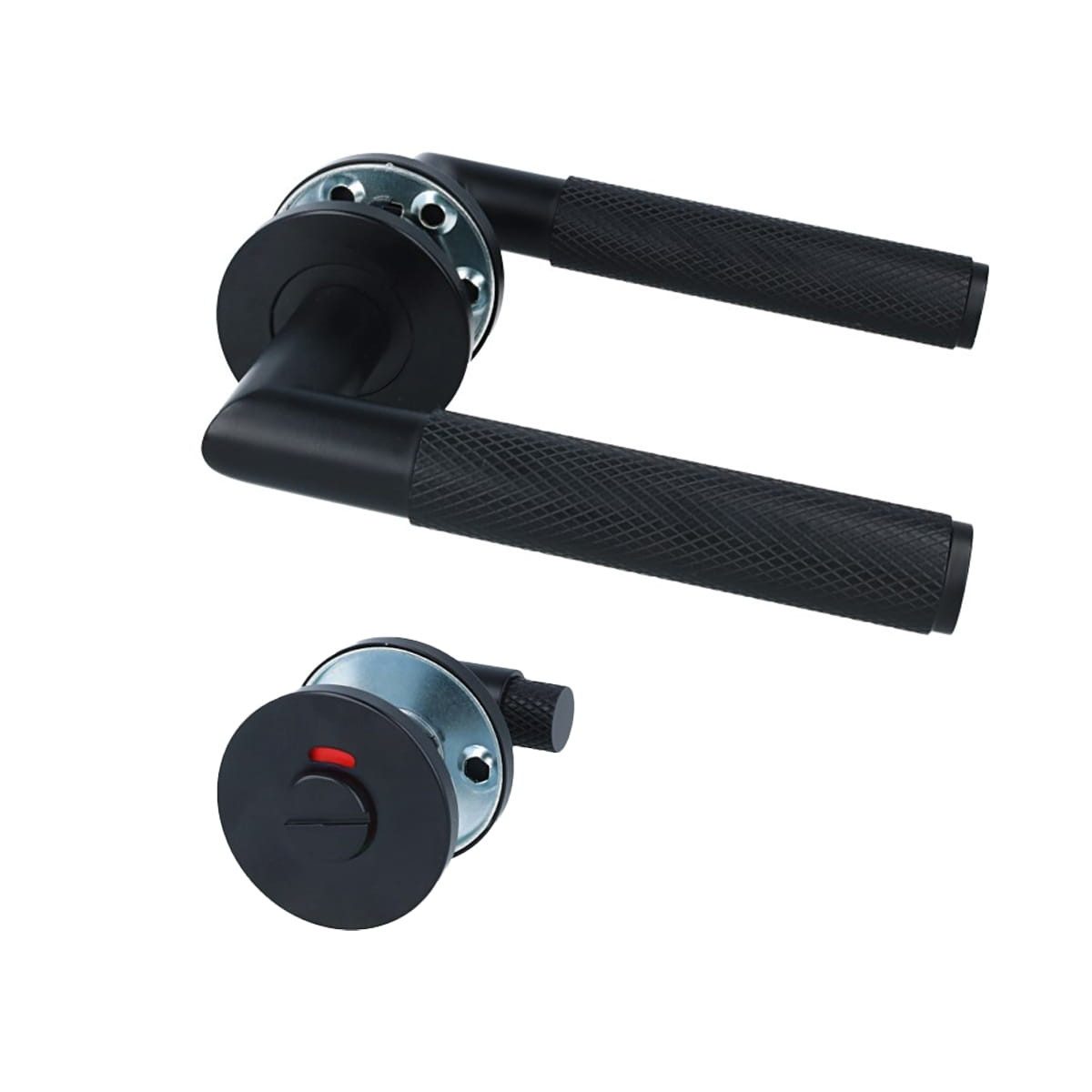 Setze stilvolle Akzente mit der Rosettengarnitur DG.214. Die strukturierte Oberfläche des Türdrückers sorgt für einen eleganten Look und sicheren Halt. Die Türgriffe sind DIN-links und -rechts verwendbar, verdeckt montierbar und inklusive Bohrschablone einfach zu installieren. Die Metallunterkonstruktion sowie Hochhaltefedern sorge für langanhaltende Funktionalität. Ideal für Zimmertüren, Badezimmer oder Türen mit Zylinderschloss – passend in Buntbart, als reines Drückerpaar, PZ oder WC-Ausführung. Die neue Türästhetik wartet – nur einen Klick entfernt!