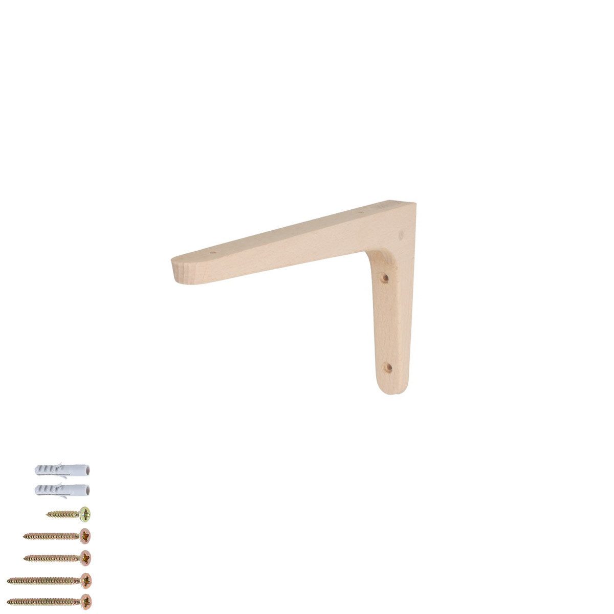 Gefertigt aus Buchenholz, bieten diese Holzkonsolen eine nachhaltige und langlebige Option für Ihre Regale. Holz ist ein Naturprodukt, und jede Konsole überzeugt durch ihre individuelle Maserung, die Wärme und Natürlichkeit in Ihr Zuhause bringt. Die verschiedenen Größen ermöglichen vielseitige Einsatzmöglichkeiten, während die Verarbeitung mit abgerundeten Kanten und vertieften Schraublöchern höchste Qualität garantiert. Ob einzeln oder im Set – eine ideale Wahl für umweltbewusste Kunden.