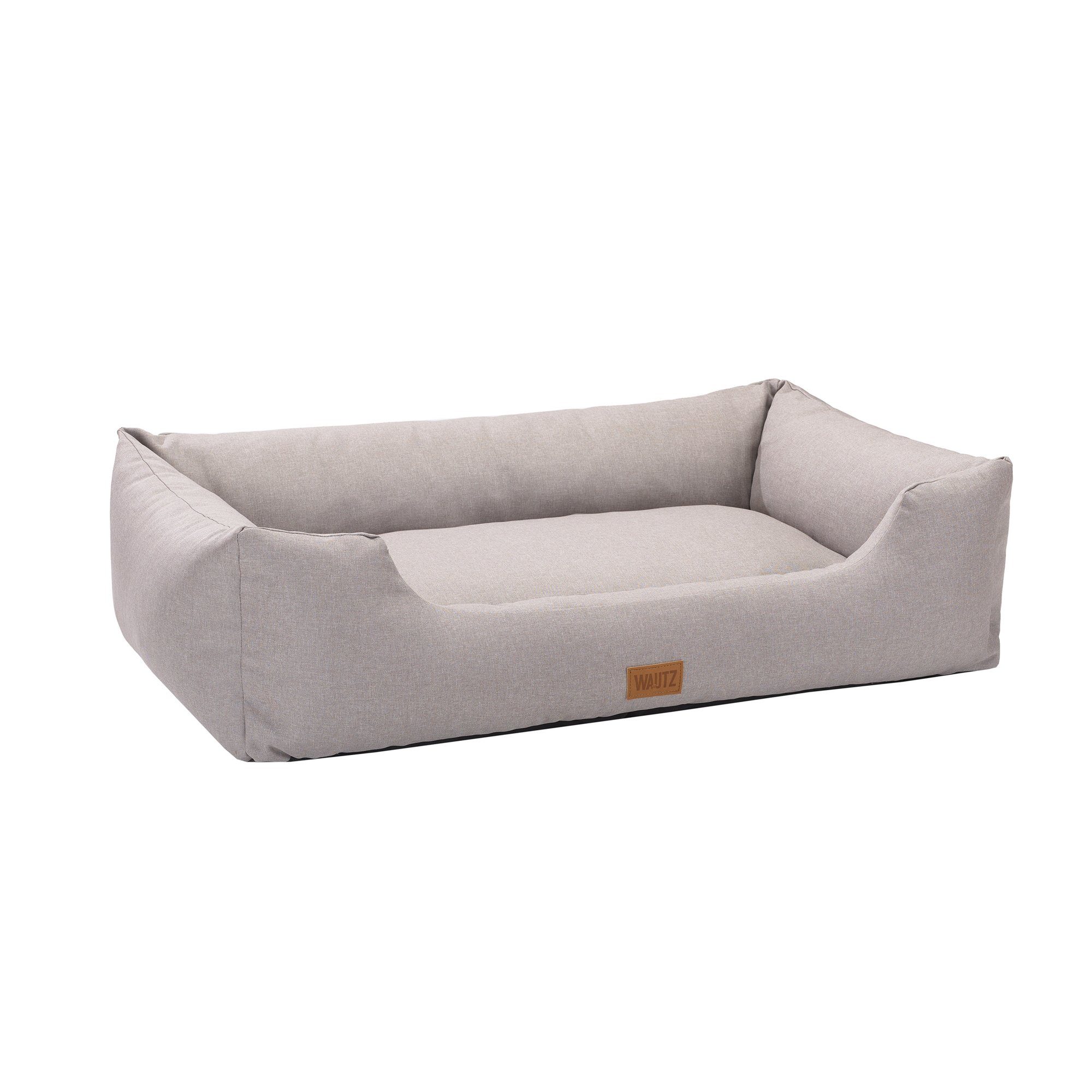 Hergestellt aus strapazierfähigem Velours mit feinemHandwebcharakter lässt sich der Hundematratzen-Bezug einfach abziehen und bei30°C in der Waschmaschine waschen.