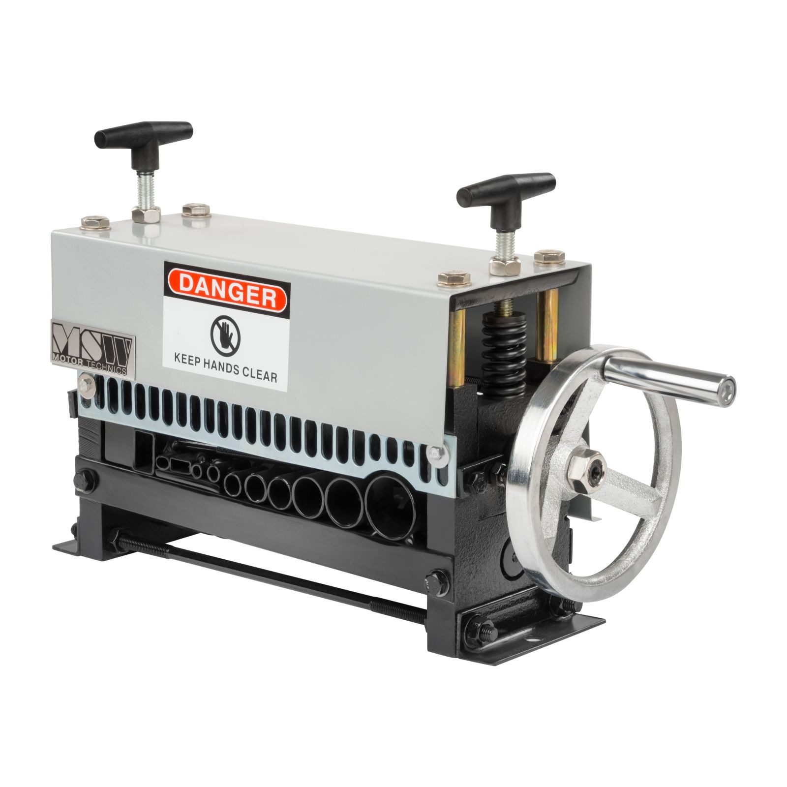Mit der Kabelschälmaschine MSW-WIRESTRIPPER-005 führen Sie schnell und bequem präzise Abisolierarbeiten an Kabeln, Litzen oder Leitungen durch. Wo herkömmliche Klemmschneidverfahren versagen, schafft es das Profigerät selbst schwierige Isolationen zu entfernen. Die Abisoliermaschine eignet sich für Kupfer-, Aluminium- und Flachkabel mit einer maximalen Stärke von 38 mm. Die Werkzeuge von MSW kommen in der Werkstatt, auf dem Bau, im Haus und im Garten zum Einsatz.