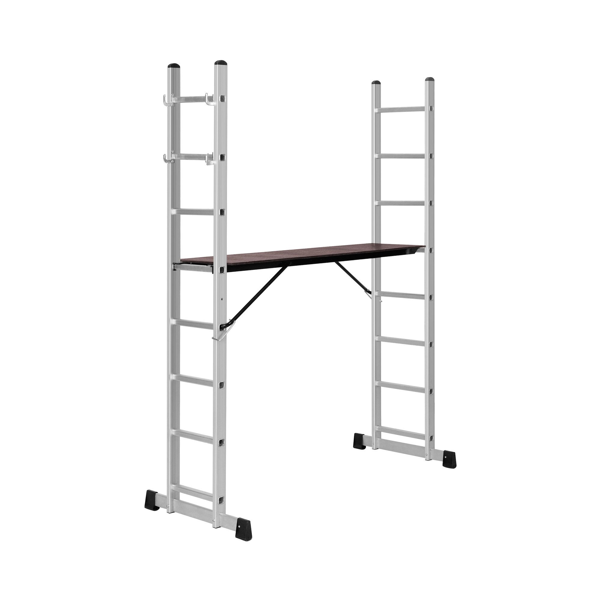 Diese Flexibilität ermöglicht Ihnen, verschiedene Aufgaben im Innen- und Außenbereich effizient zu bewältigen. Mit einer Tragfähigkeit von 150 kg und einer modularen Bauweise eignet sich das Gerüst ideal für Bau- und Industrieanwendungen.