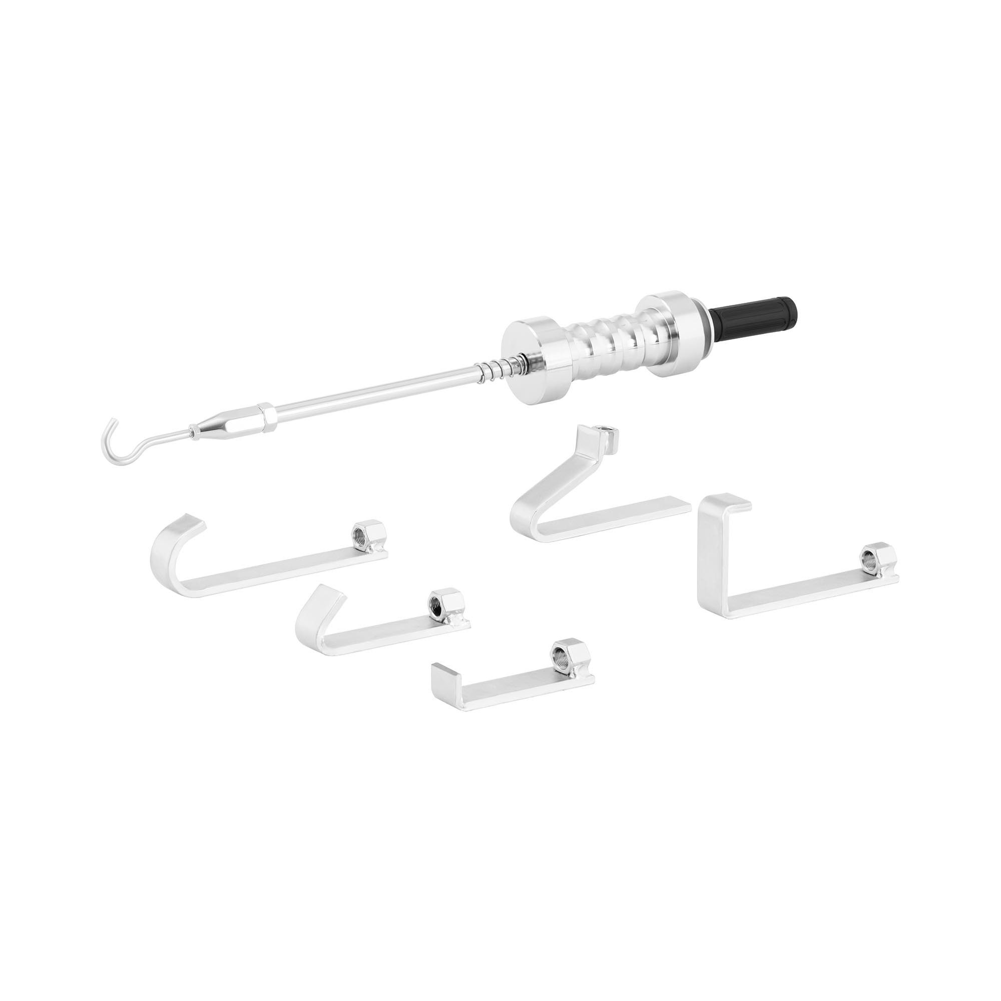 Mit dem 17 cm langen Griff haben Sie jederzeit alles in fester Hand. So verspricht der Beulenauszieher eine optimale Übertragung der Zugkraft auf die Karosserie. Auf das Gewinde des Gleithammers lassen sich unterschiedliche Zughaken schrauben – je nachdem, wie groß die Delle ist und welche Form sie hat. Beim Kauf dieses Sets erhalten Sie fünf praktische Haken. Für einen sicheren Halt ist der Griff des Gleithammers mit rutschfestem Kunststoff ummantelt.