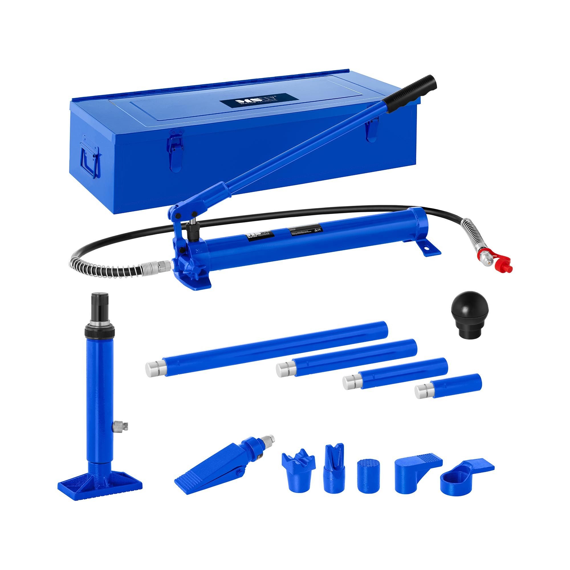 Die Karosseriepresse MSW-KP-10 ist der optimale Helfer, wenn es um Ausbeulen oder Richten von Karosserien in Kfz-Werkstätten oder in der Heimwerkstatt geht. Всеrdings steckt noch viel mehr in diesem Universalwerkzeug! Diese Presse ist für viele anfallende Arbeiten die richtige Wahl. Sie wird als Maschinen- oder Wagenheber genutzt, sowie zum Versetzen von Maschinen. Selbst im Baugewerbe zum Abstützen von Decken oder beim Einsetzen von Deckenstützen kommt dieser Richtsatz zum Einsatz. Das Set enthält alle schweren Geräte, die zum Heben, Ziehen, Biegen, Richten und Spreizen benötigt werden. Somit eignet sich die Karosseriepresse von MSW optimal für den industriellen oder privaten Gebrauch.