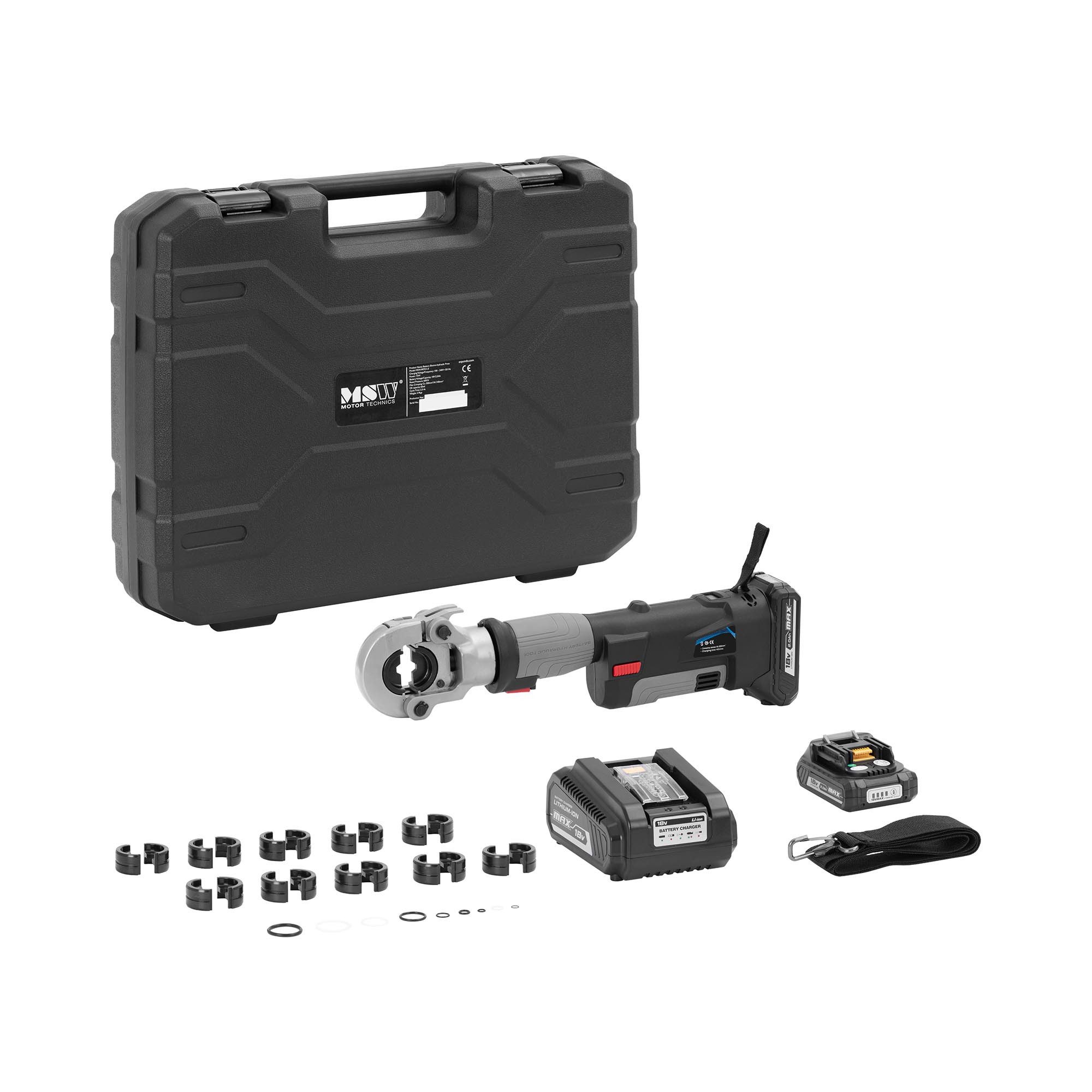 Lieferumfang | Hydraulische Crimpzange MSW-PRTO1.0Pressbacken (16 / 25 / 35 / 50/ 70 / 95 /120 / 150 / 185 / 240 / 300 mm²)2 AkkusLadegerät1 Set Dichtungsringe für den Zylinder1 Set Dichtungsringe für das SicherheitsventilSchultergurtTransportkoffer |