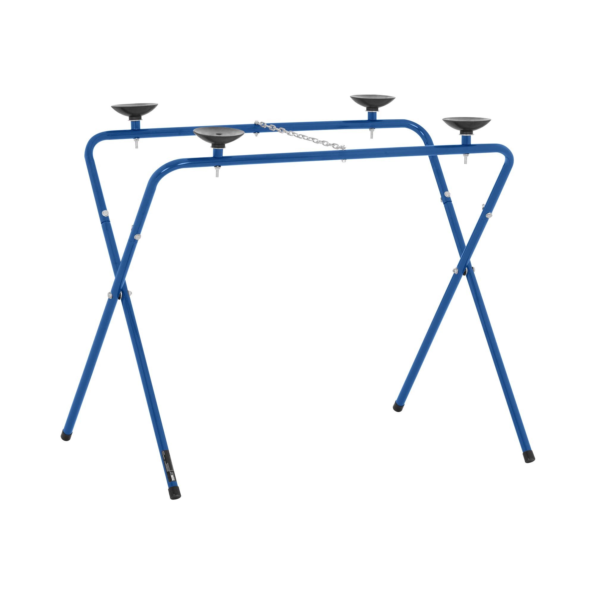 Der Scheibenbock Kfz MSW-BSPS-4S eignet sich ideal zum Ablegen von demontierten Windschutzscheiben beim Entfernen bzw. Auftragen von Klebematerialien. Insgesamt kann der Windschutzscheiben Tisch 150 kg tragen. Mithilfe der beiden Ketten kann die Spreizung verändert werden, was zur Folge hat, dass verschiedene Arbeitshöhen sowie Breiten eingestellt werden können. Ob Hobbybastler oder Profi, die Kfz-Werkzeuge und der Handwerksbedarf von MSW bereichern jede Werkstatt.