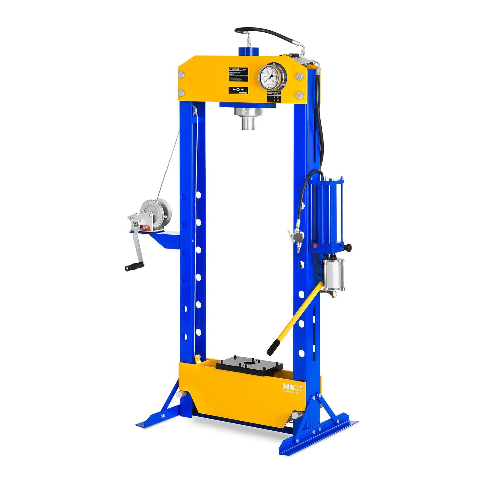 Die Werkstattpresse hydropneumatisch WP-30T-P aus dem Handwerksbedarf von MSW wurde für den professionellen Einsatz in Kfz-Werkstätten oder im Maschinenbau konzipiert. Die hydropneumatische Presse verfügt über einen Pressdruck von 30 t, dessen Entwicklung auf dem integrierten Manometer präzise abgelesen werden kann. So können problemlos verschiedenste kraftraubende Arbeiten erledigt werden, wie etwa der Wechsel von Rad- oder Gummilagern, das Abpressen von Getriebewellen oder auch das Pressen und Verbiegen von Metallen aller Art.