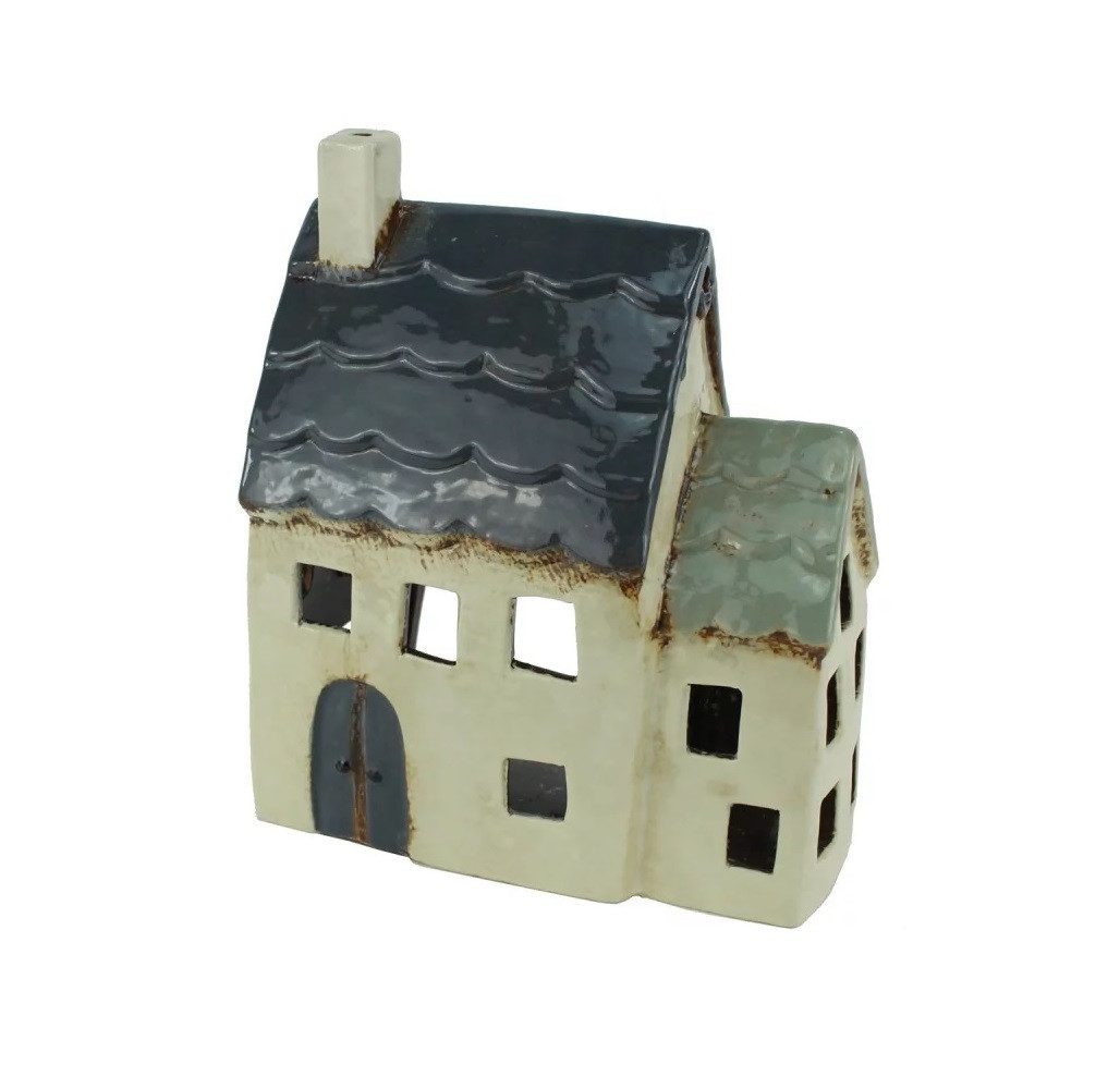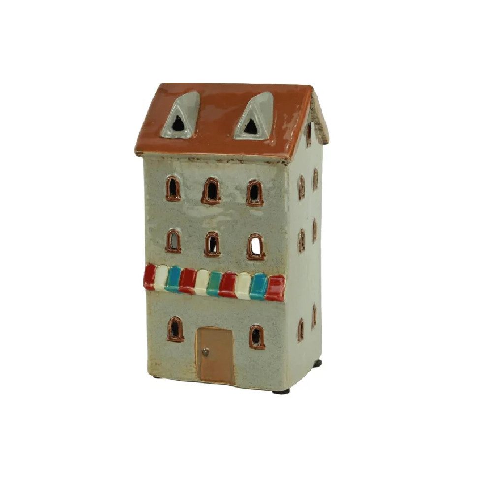Erleben Sie die zeitlose Eleganz unserer handgefertigten Keramik Windlichter im skandinavisch inspirierten Hausdesign. Ihr schlichtes, dennoch ansprechendes Hausmotiv fügt sich harmonisch in jede Umgebung ein. Das Teelicht im inneren erzeugt ein warmes Licht, welches sanft durch die Fenster scheint und eine einladende Atmosphäre schafft. Diese Windlichter sind vielseitig einsetzbar, drinnen und draußen, und eignen sich ideal als Geschenk für Designliebhaber. Sie verleihen Ihrem Raum eine gemütliche und zeitlos schöne Note im skandinavischen Stil.