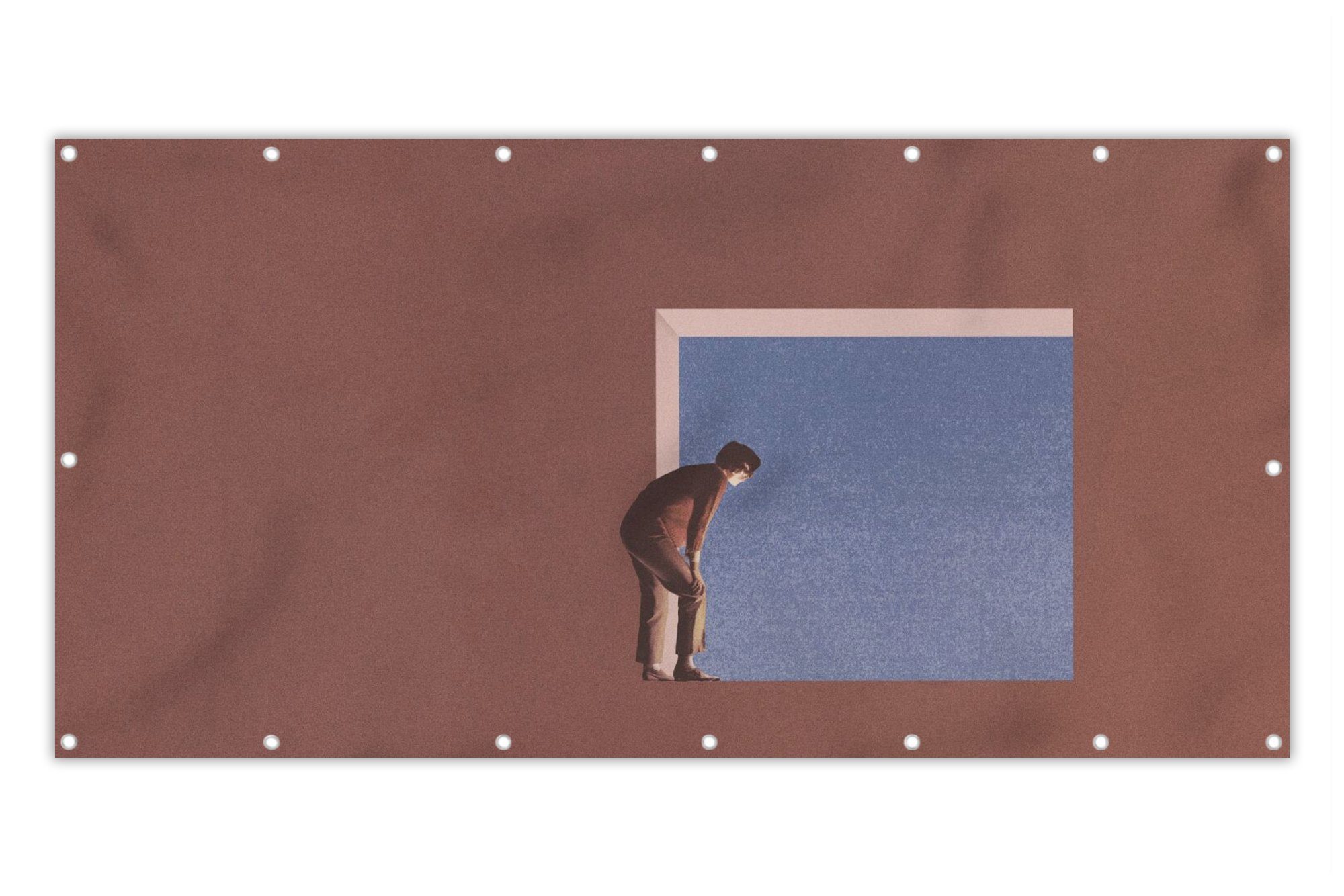 Vintage-Design eines Mannes, der durch ein ausgeschnittenes Loch schaut.