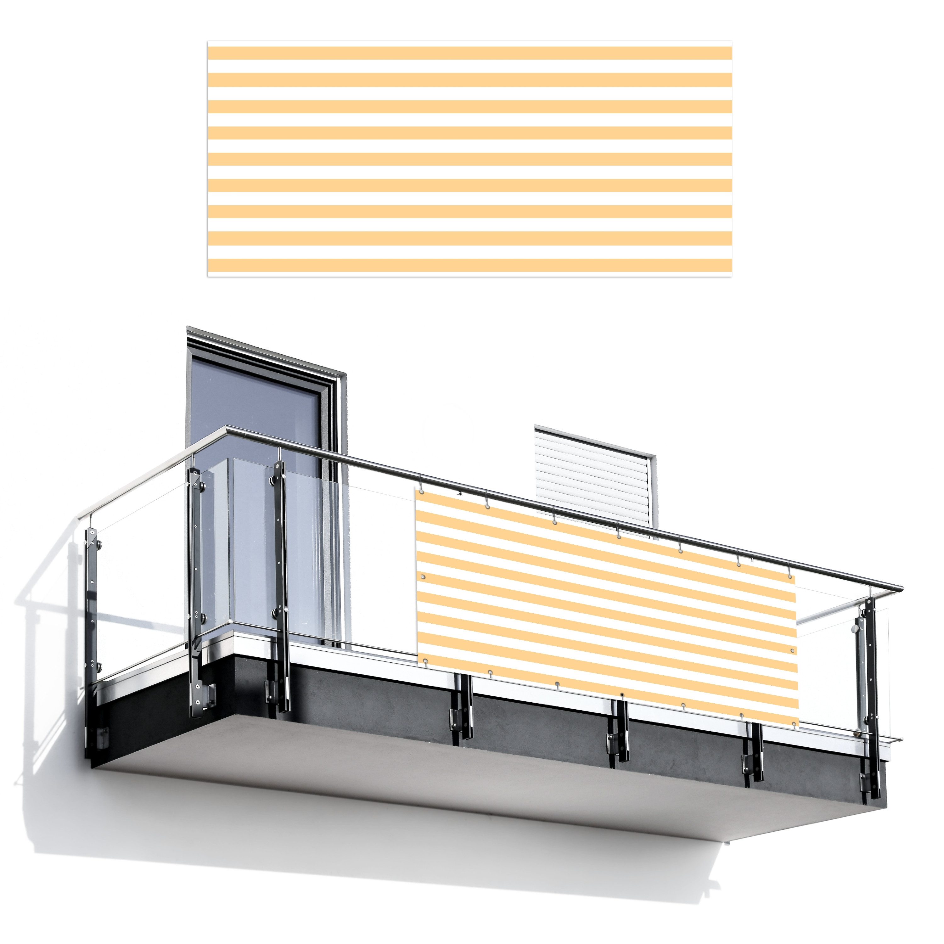 Unsere Produkte sind langlebig und garantieren Qualität. Die Metallösen sind angeordnet alle 30 cm an der Ober- und Unterseite des Materials und der Öffnungen an den Ecken haftet die Abdeckung sicher an der Oberfläche des Balkons, der Brüstung oder des Zauns. Eine Anzahl von Kabelbindern ist im Lieferumfang enthalten. Selbstverständlich kann der Balkon Sichtschutz auch als Schutz der Privatsphäre im Garten und um ein Schwimmbad gebraucht werden.