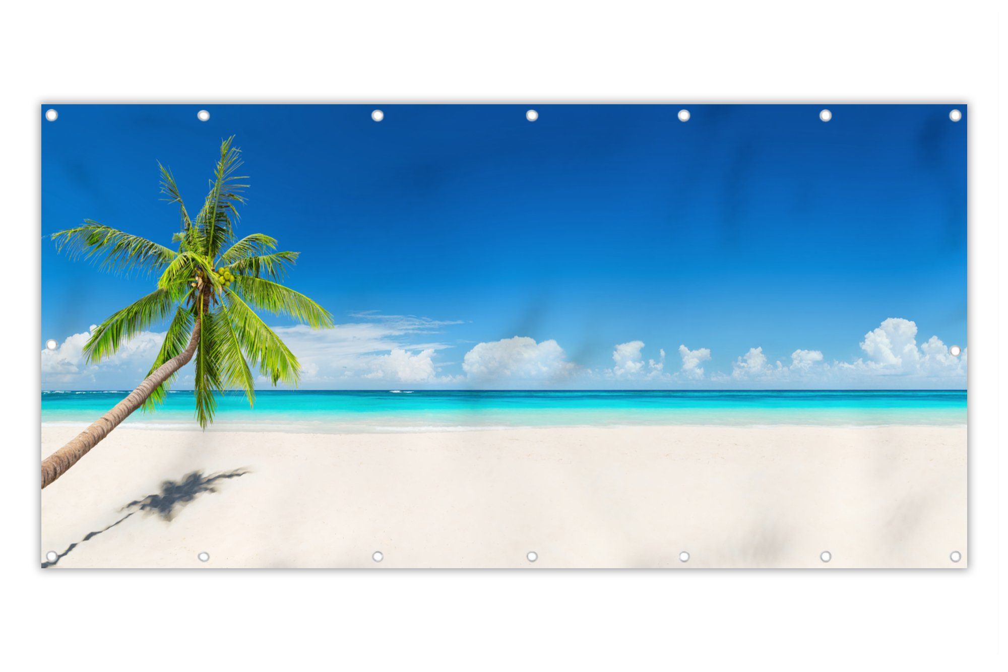 Tropischer Strand mit Palme im Sommer.