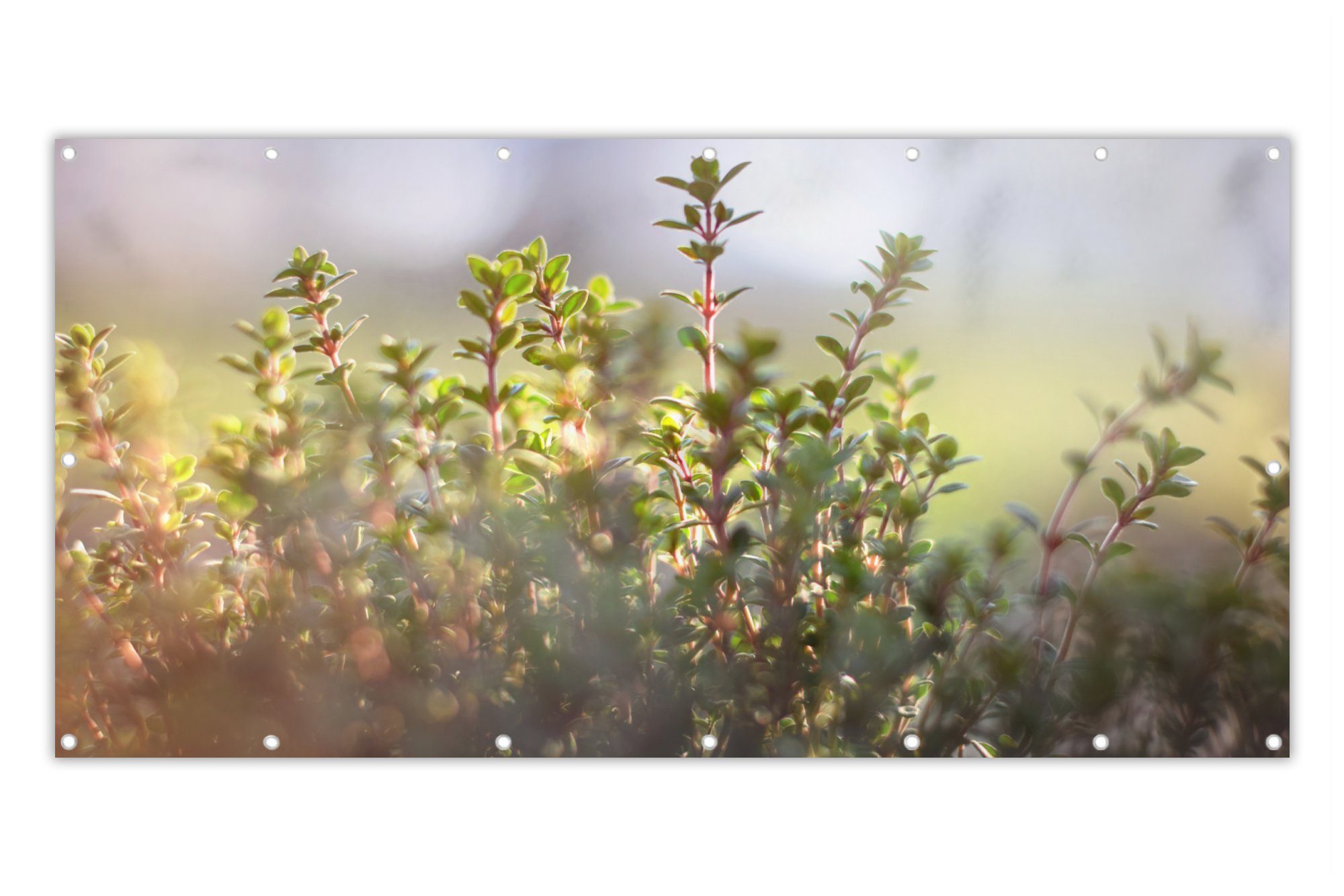 Die Wintersonne beleuchtet die zauberhaften Thymianpflanzen in der Natur. Thymian ist daher ein wichtiges Würzmittel der provenzalischen Kräutermischung