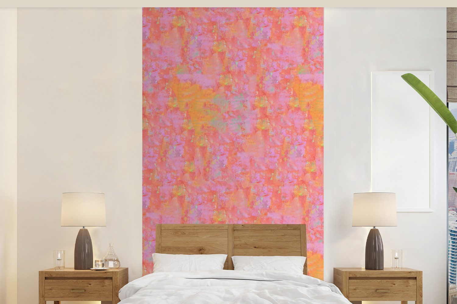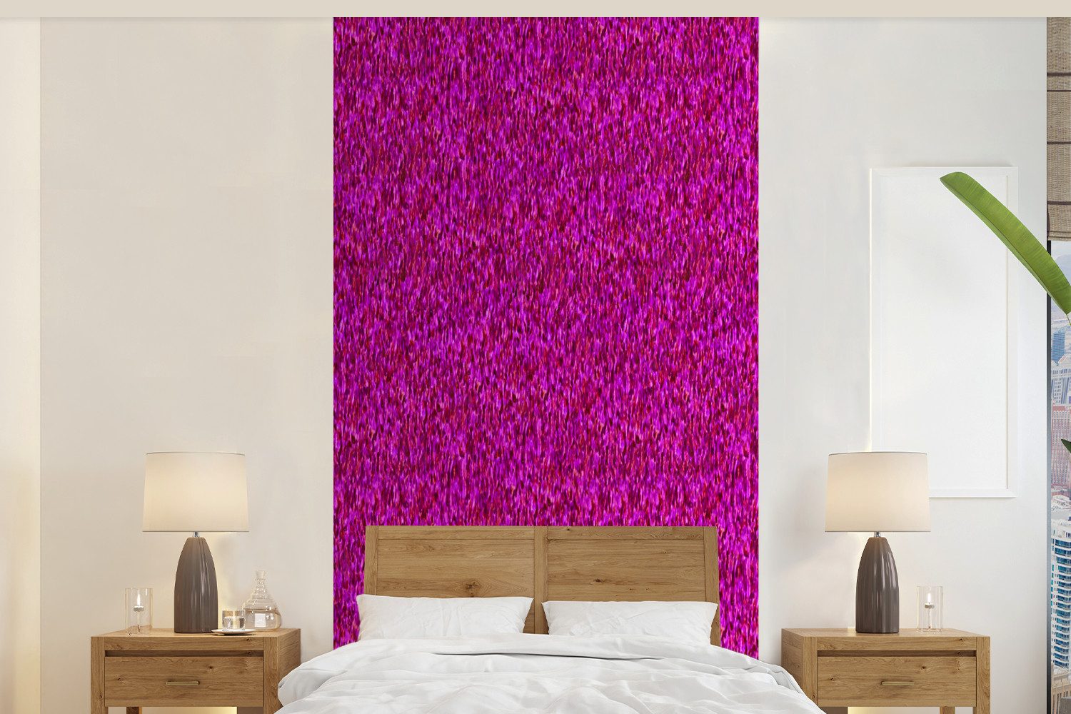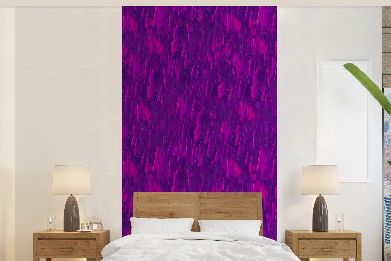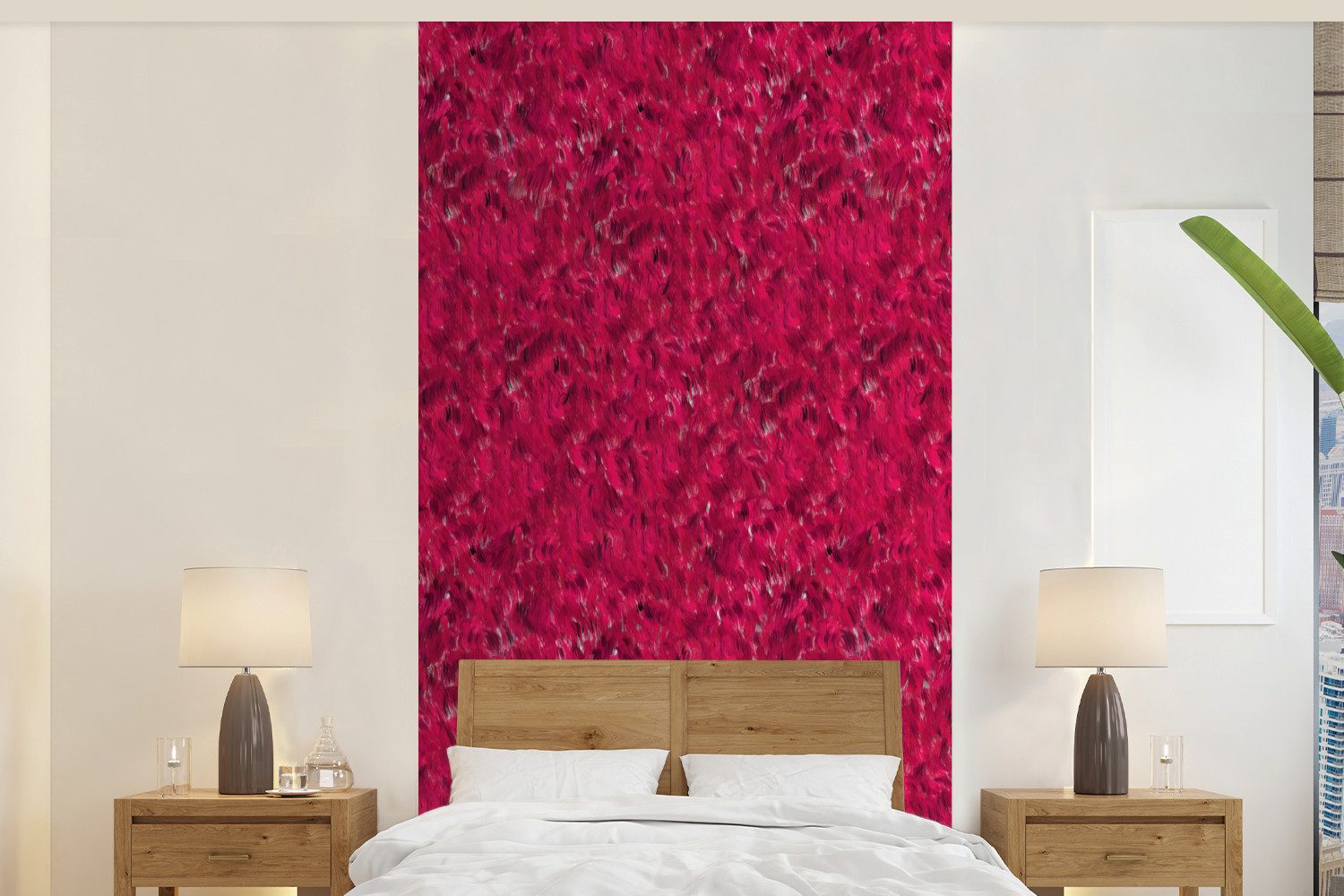 Eine dichte Ansammlung von kurzen Pinselstrichen in leuchtenden Magenta- und Rottönen füllt die gesamte Fläche aus. Die Bewegungen wirken chaotisch, aber rhythmisch und schaffen eine pulsierende, fast leuchtende Textur. Die Farben vermischen sich auf subtile Weise und schaffen ein lebendiges, energiegeladenes Muster.Oberflächenstruktur | Matt |