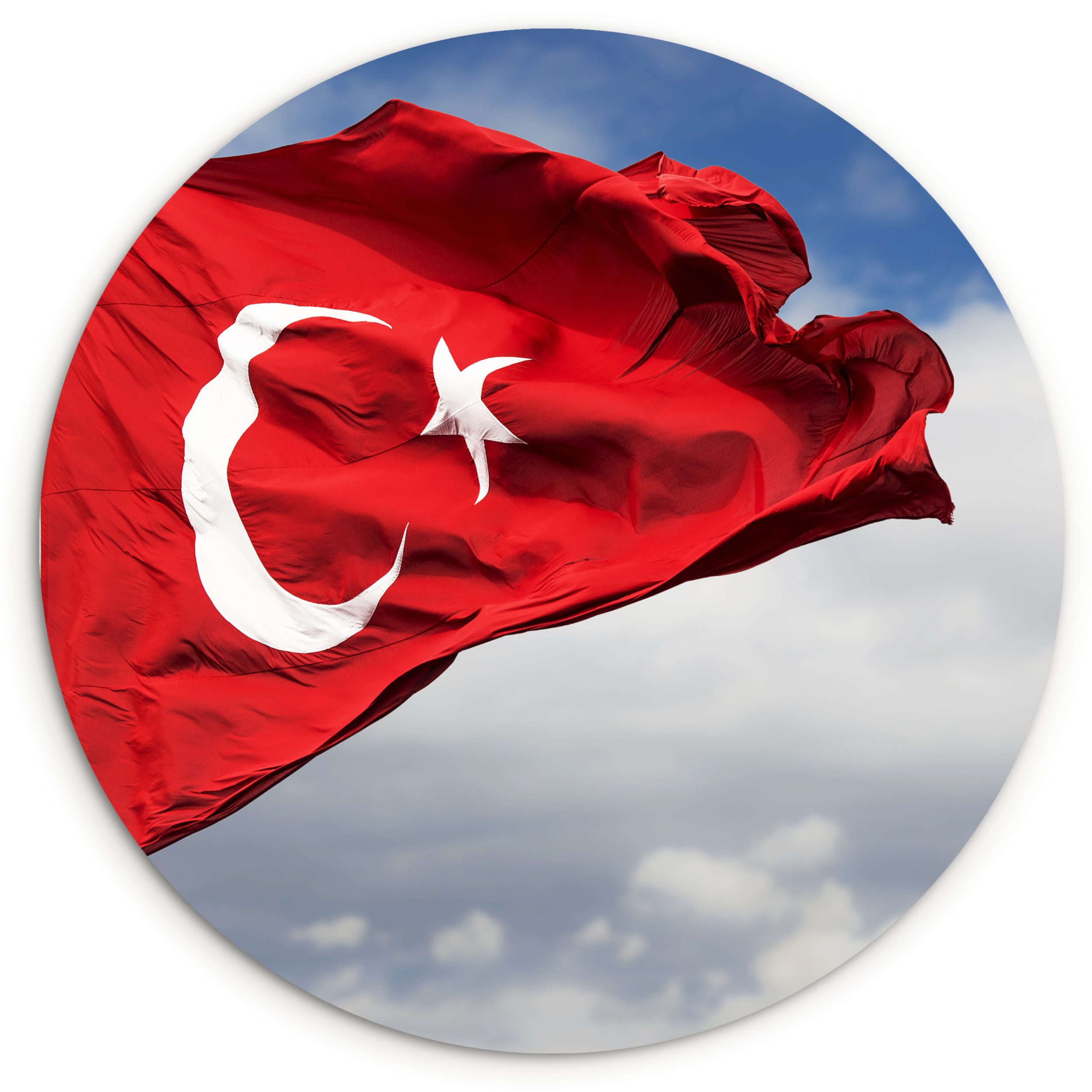 Eine türkische Flagge im Wind. Das Design der türkischen Flagge ist eine direkte Anlehnung an die Flagge des Osmanischen Reiches, die 1844 ihre endgültige Form erhielt. Die Osmanen verwendeten seit dem 14. Jahrhundert rote dreieckige Fahnen. In den folgenden Jahrhunderten wurden sie zunehmend rechteckig gestaltet.