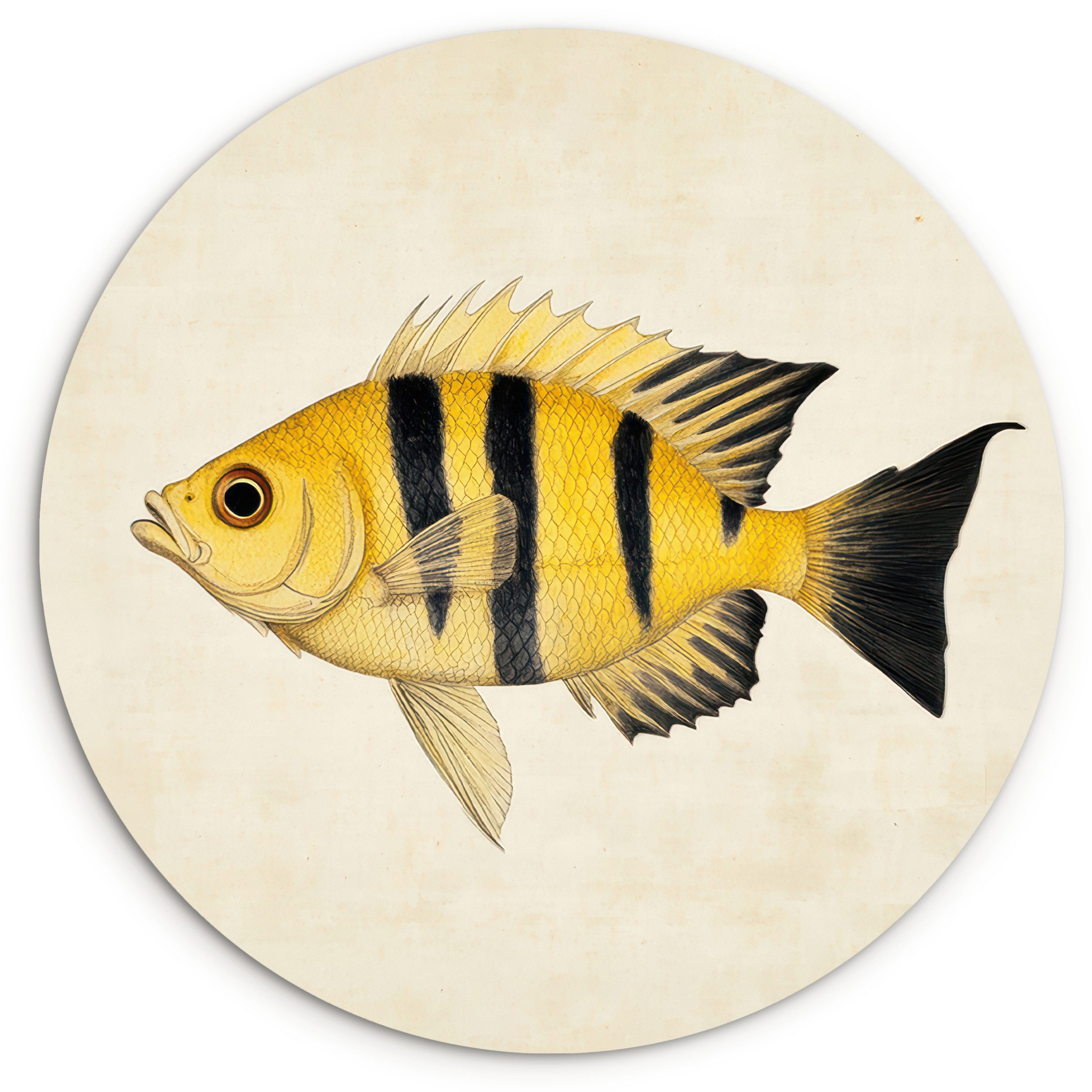 Dieser Fisch hat eine leuchtend gelbe Farbe mit drei dicken, schwarzen Längsstreifen. Er hat eine einfachere Form, die an einen traditionellen tropischen Rifffisch erinnert. Seine Flossen sind klein und scharf.