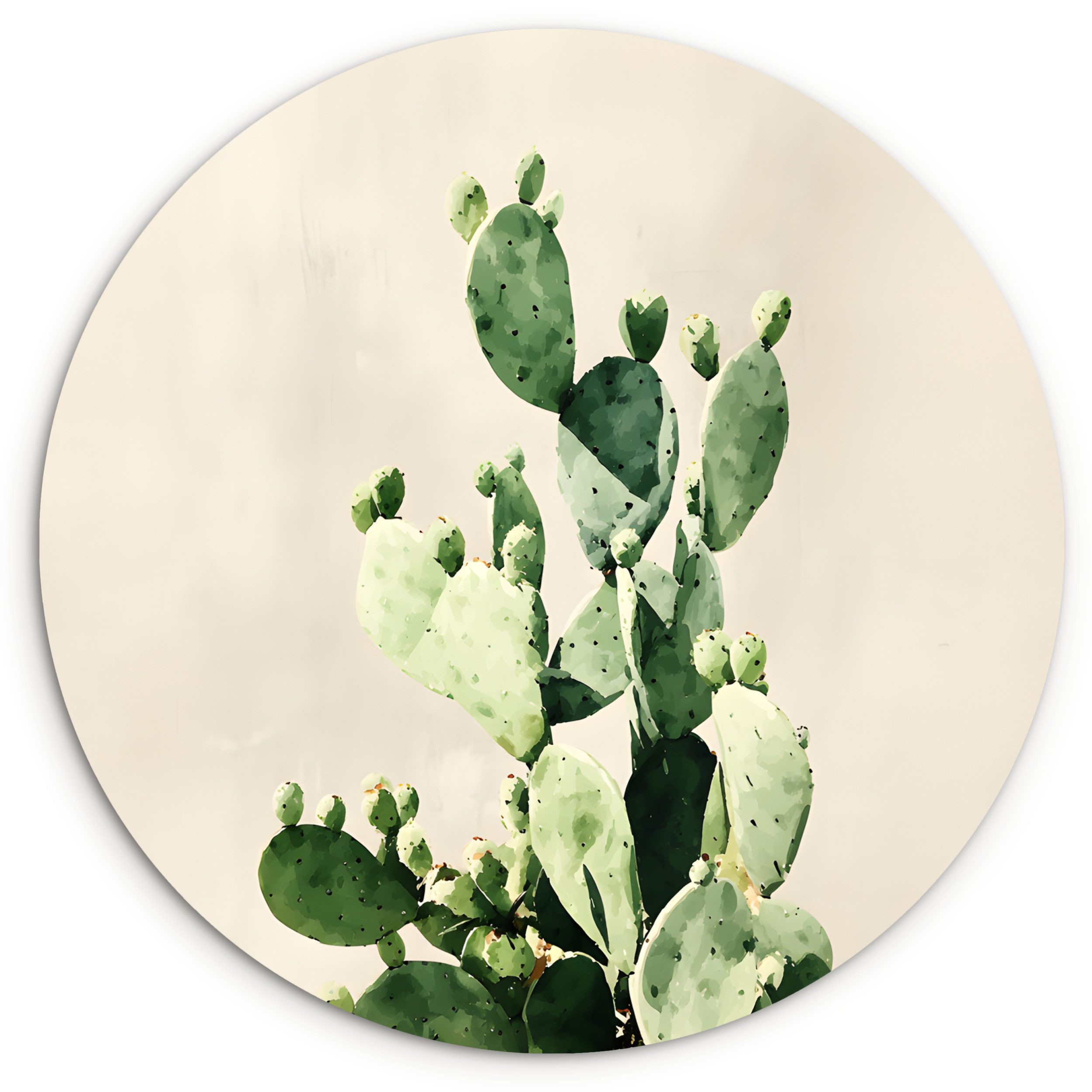Ein grüner Kaktus mit ovalen Blättern und jungen Knospen steht vor einem hellen Hintergrund. Der minimalistische Stil unterstreicht seine natürliche Form.