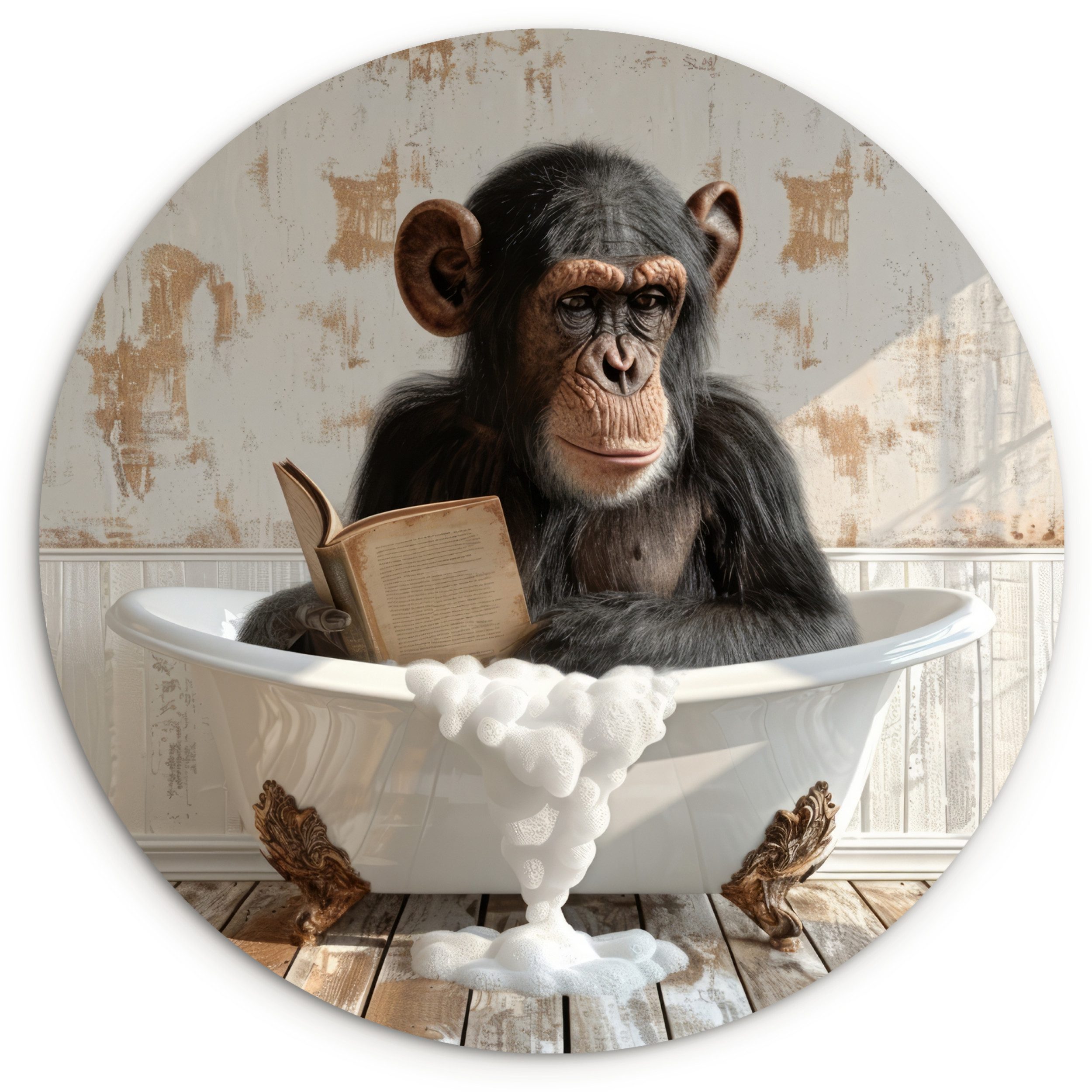 Ein Affe in einer alten Schaumstoffbadewanne.