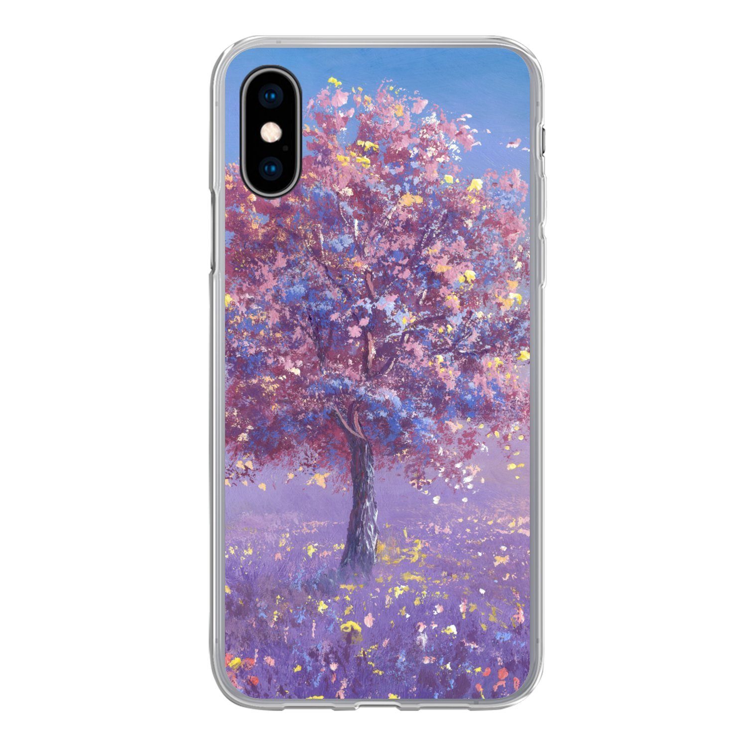 Baum mit rosa Blüte während des Sommers. Die Skulptur ist in Aquarellfarben in verschiedenen Farben gehalten.Kompatible Geräte | Apple iPhone X |