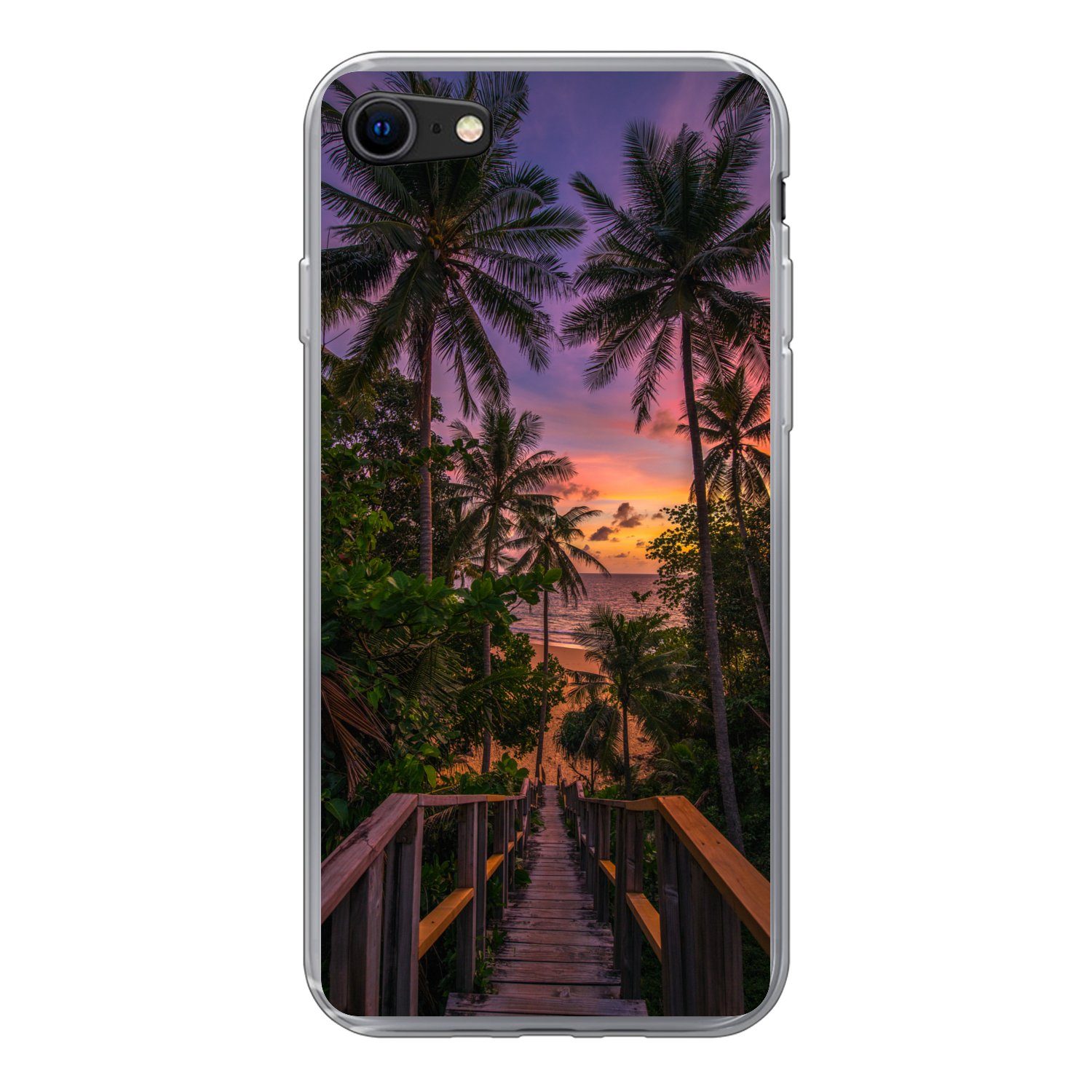 Darstellung des Sonnenuntergangs an einem tropischen Strand mit Palmen. Die untergehende Sonne färbt den Himmel orange.Kompatible Geräte | Apple iPhone 8 |