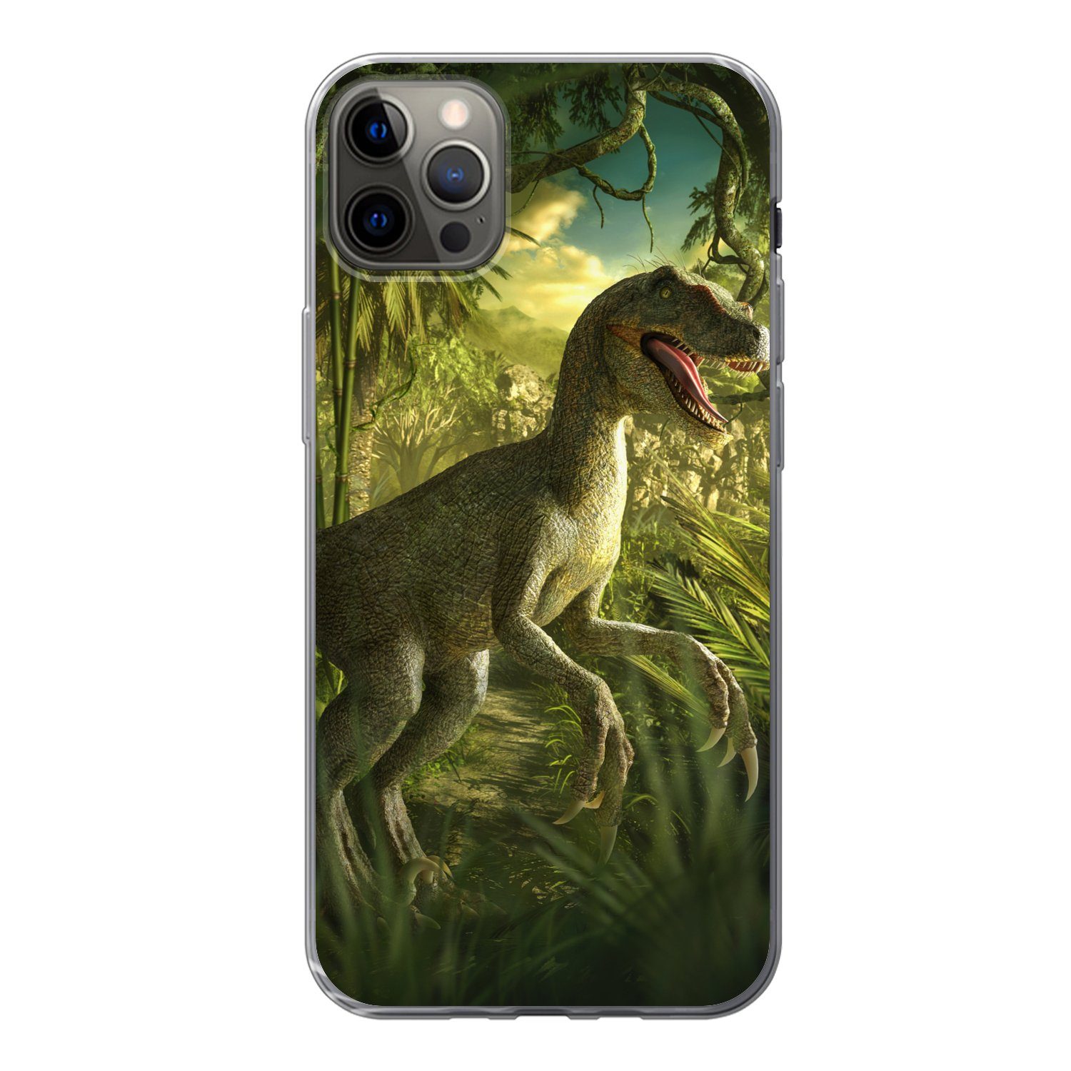 Illustration eines grünen Dinosauriers, umgeben von Pflanzen.Kompatible Geräte | Apple iPhone 12 Pro Max |
