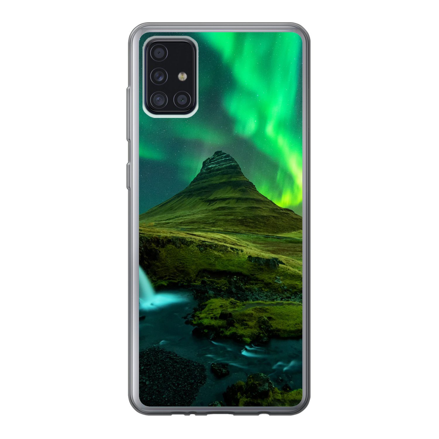 Diese Landschaft in Island ist geprägt von den Kräften der Natur in Form eines Wasserfalls, eines Berges und des Nordlichts.Kompatible Geräte | Samsung Galaxy A52 5G |