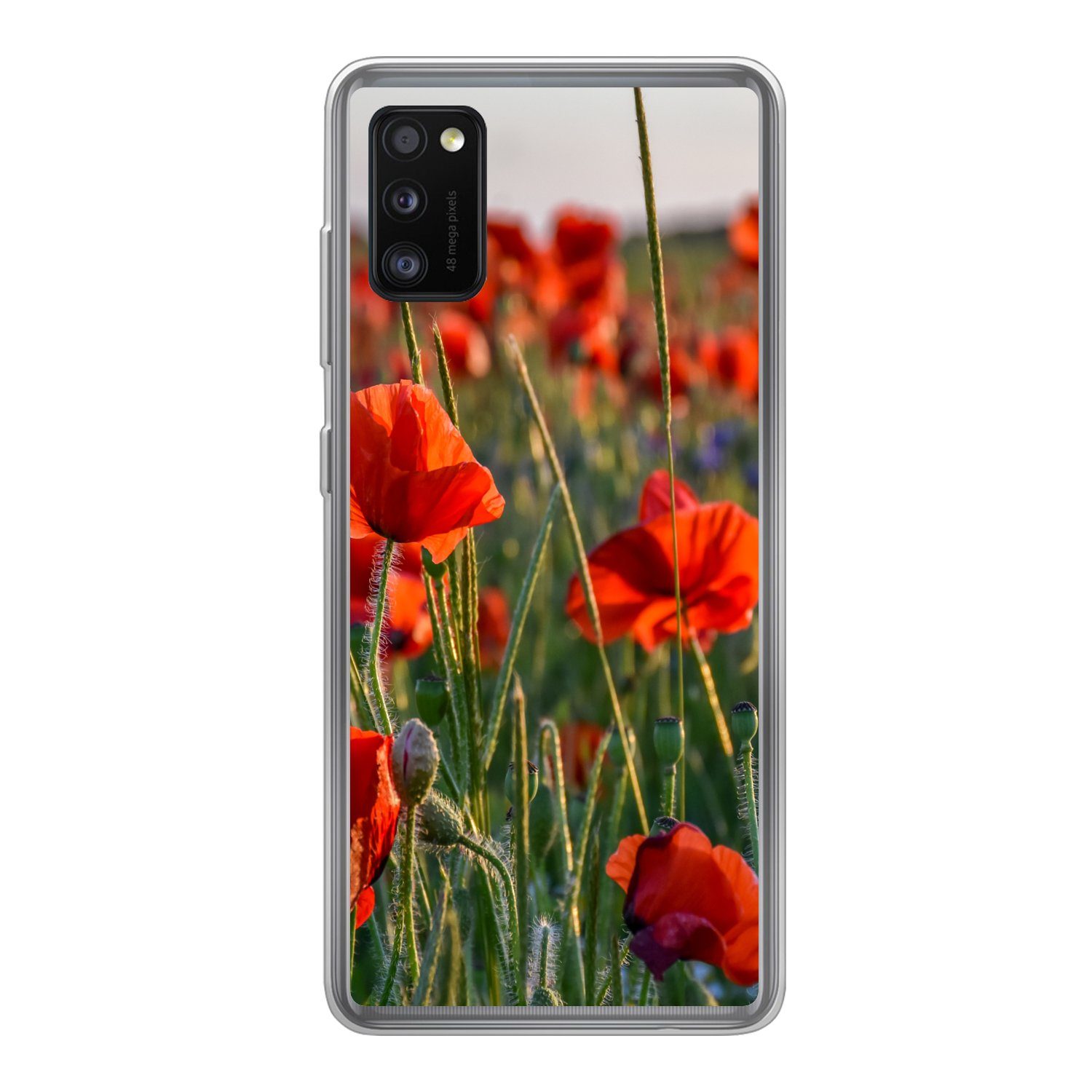 Ein Bild mit roten Mohnblumen auf einem Feld. Diese Blumen findet man oft auf Feldern am Straßenrand.Kompatible Geräte | Samsung Galaxy A41 |
