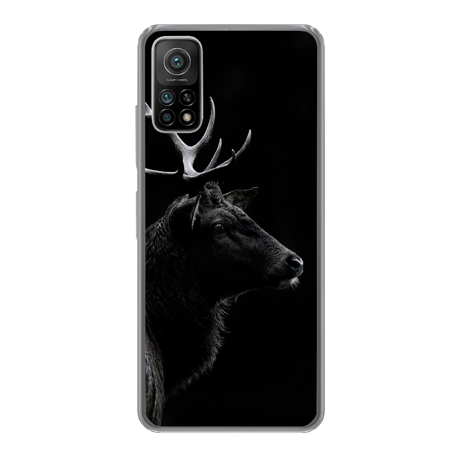 Ein Schwarz-Weiß-Porträt eines männlichen Rehs auf dunklem Hintergrund.Kompatible Geräte | Xiaomi Mi 10T 5G |