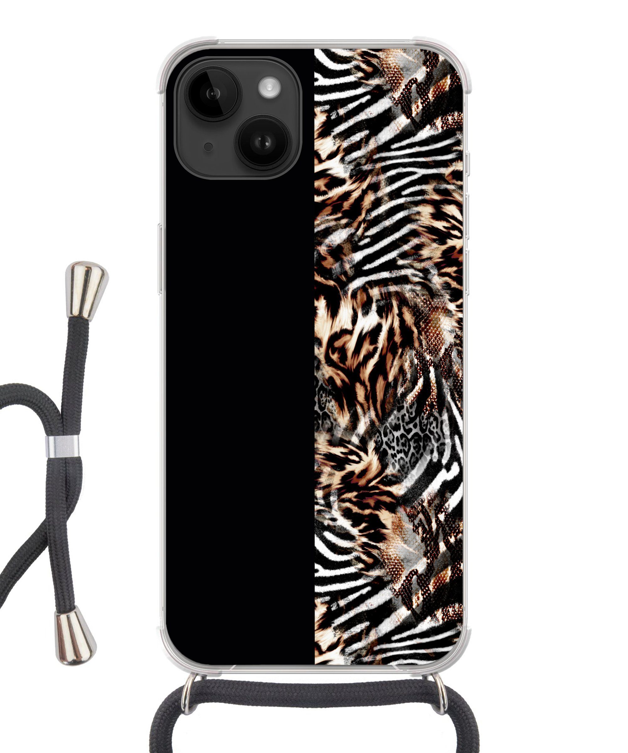 Collage mit dem Tierdruck eines Zebras, Leoparden und einer Schlange.Kompatible Geräte | Apple iPhone 14 |