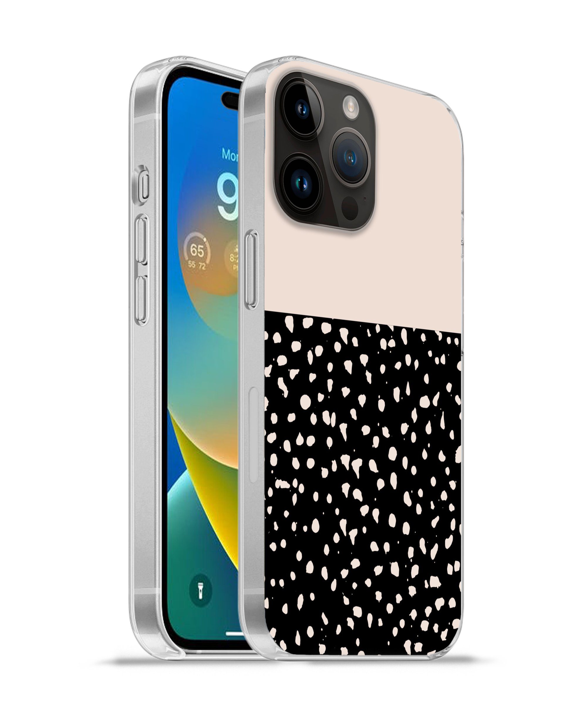 Muster aus beigen Punkten auf schwarzem Hintergrund.