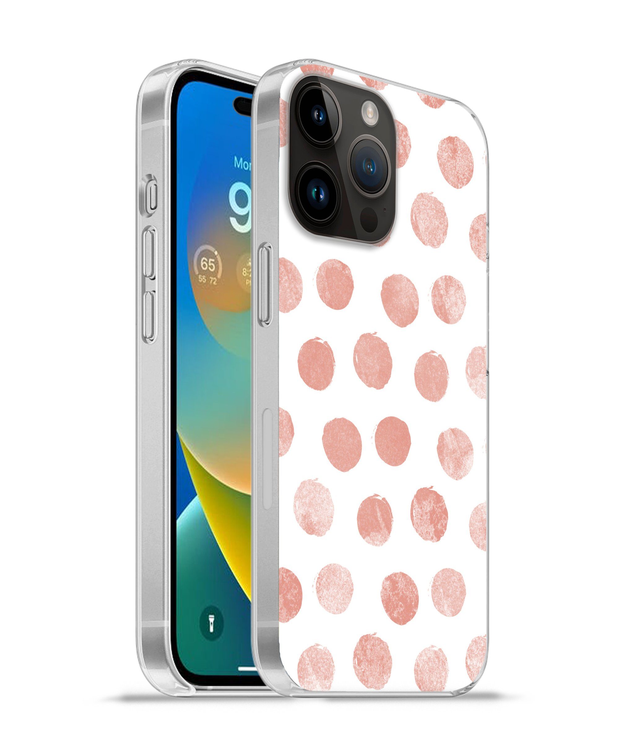 Muster aus rosa Punkten auf weißem Hintergrund.