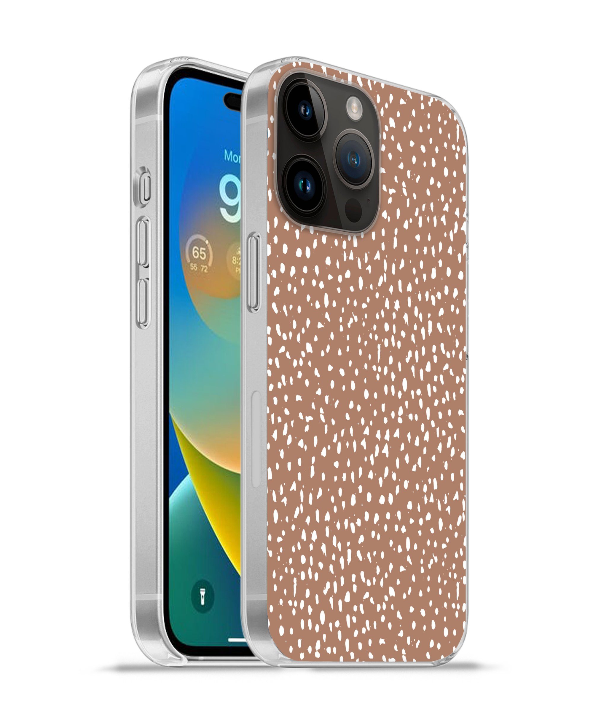 Muster aus weißen Punkten auf braunem Hintergrund.