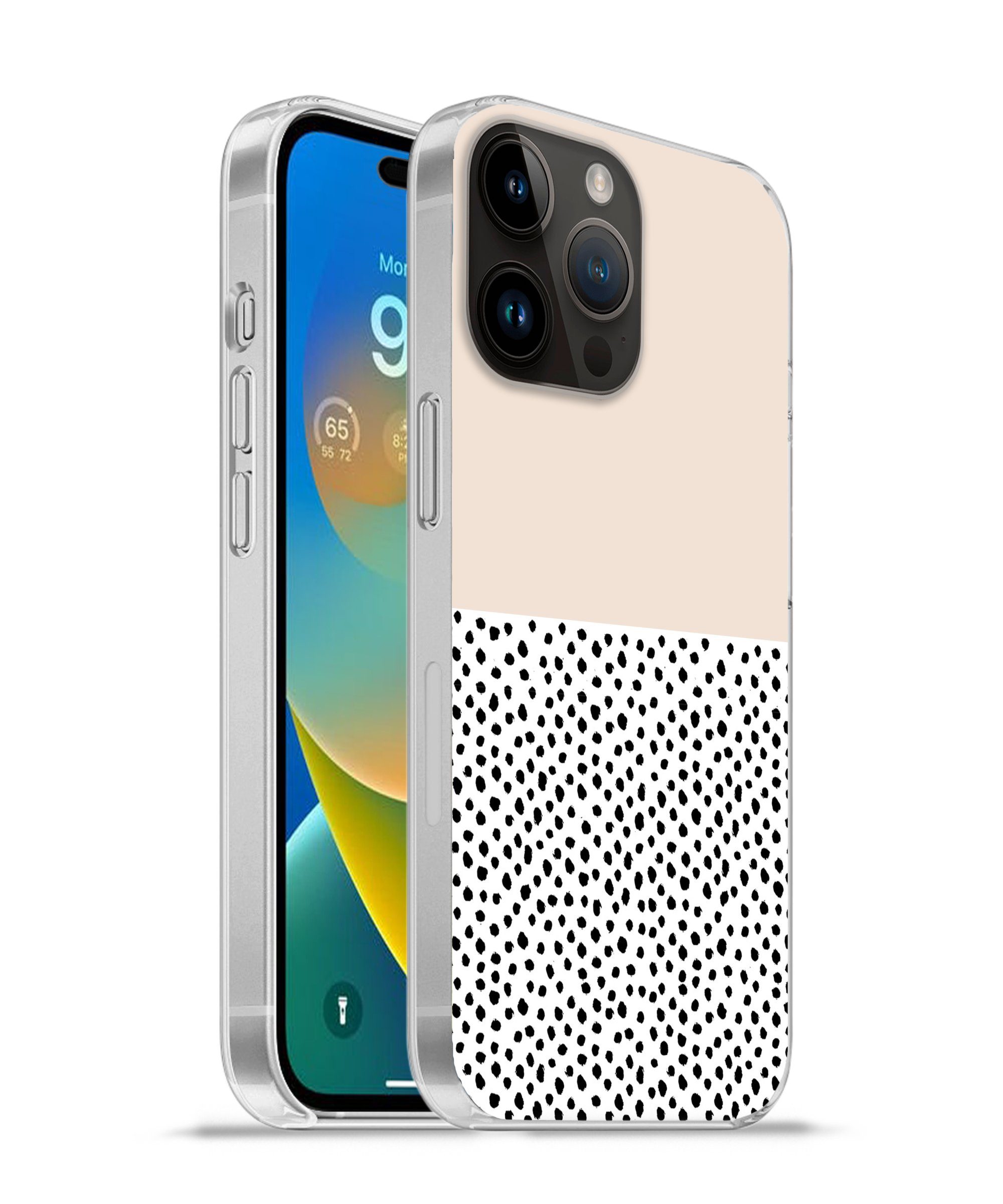 Schwarz-weißes Tupfenmuster und beigefarbene Oberfläche.