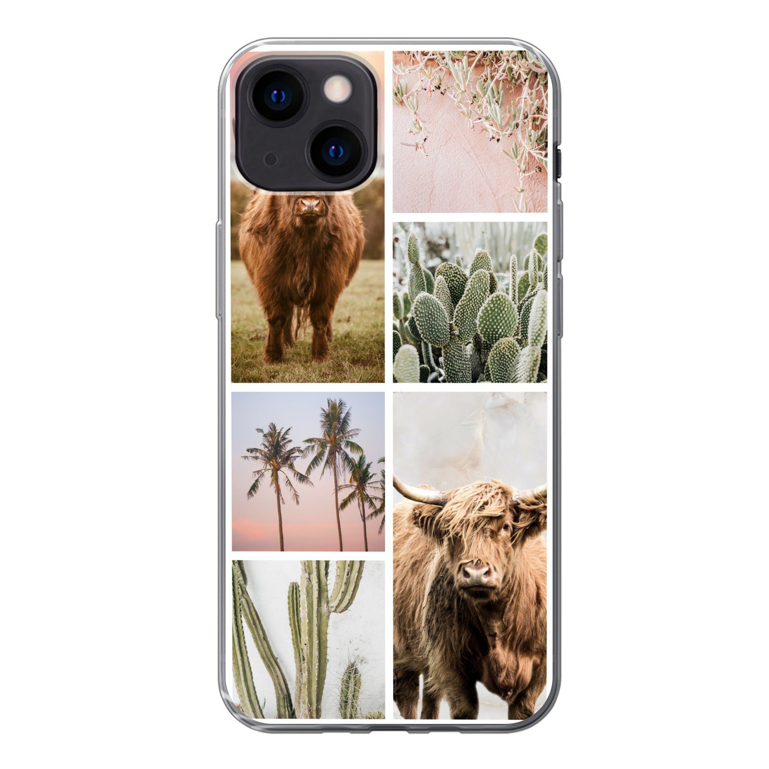 Pastellfarbene Collage mit Sukkulenten und schottischen Highlanders.Kompatible Geräte | Apple iPhone 13 |