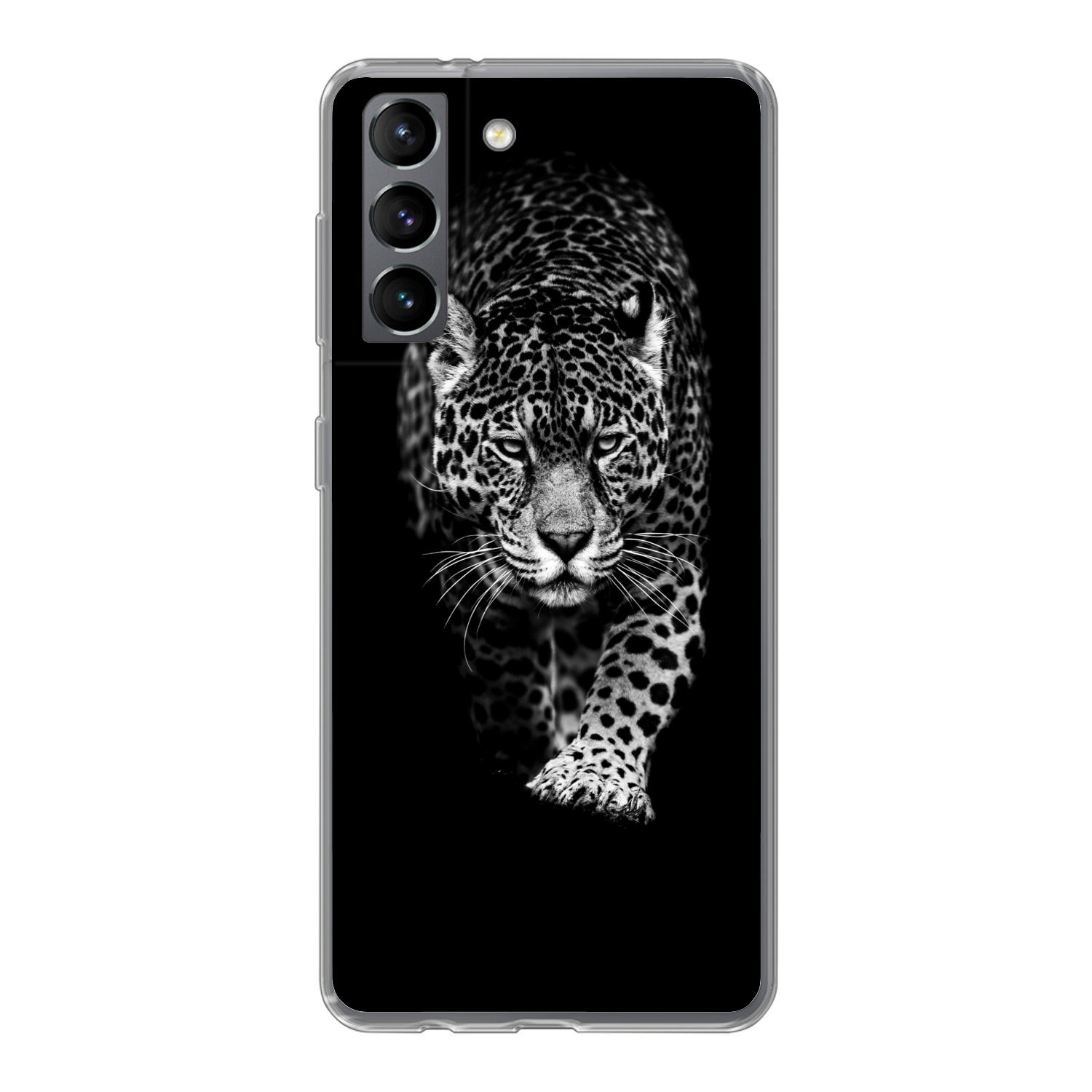 Schwarz-Weiß-Porträt eines Leoparden.Kompatible Geräte | Samsung Galaxy S21 |