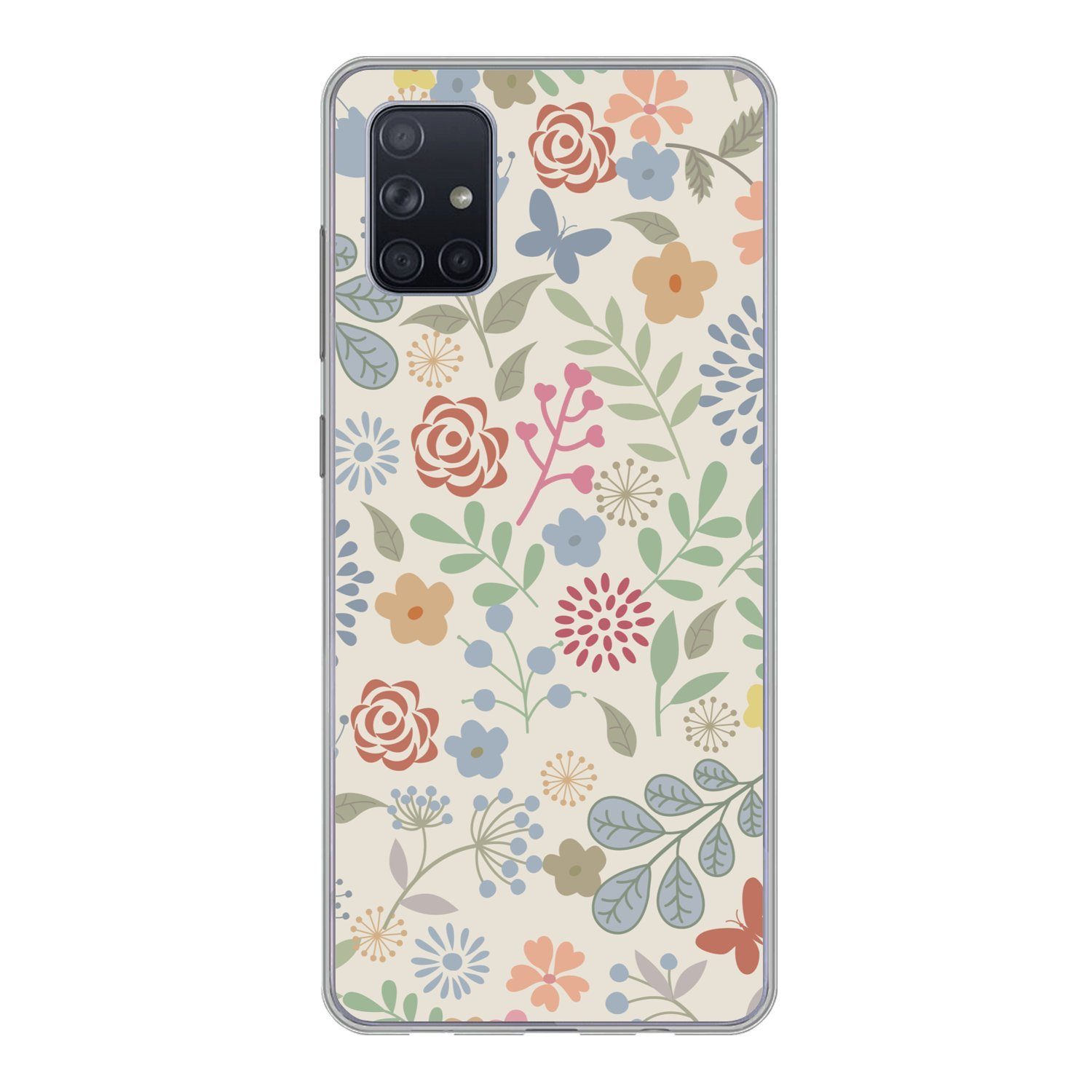 Eine schöne Illustration eines floralen Designs mit vielen schönen, verschiedenen und farbigen Blumen vor einem rosafarbenen Hintergrund.Kompatible Geräte | Samsung Galaxy A71 |