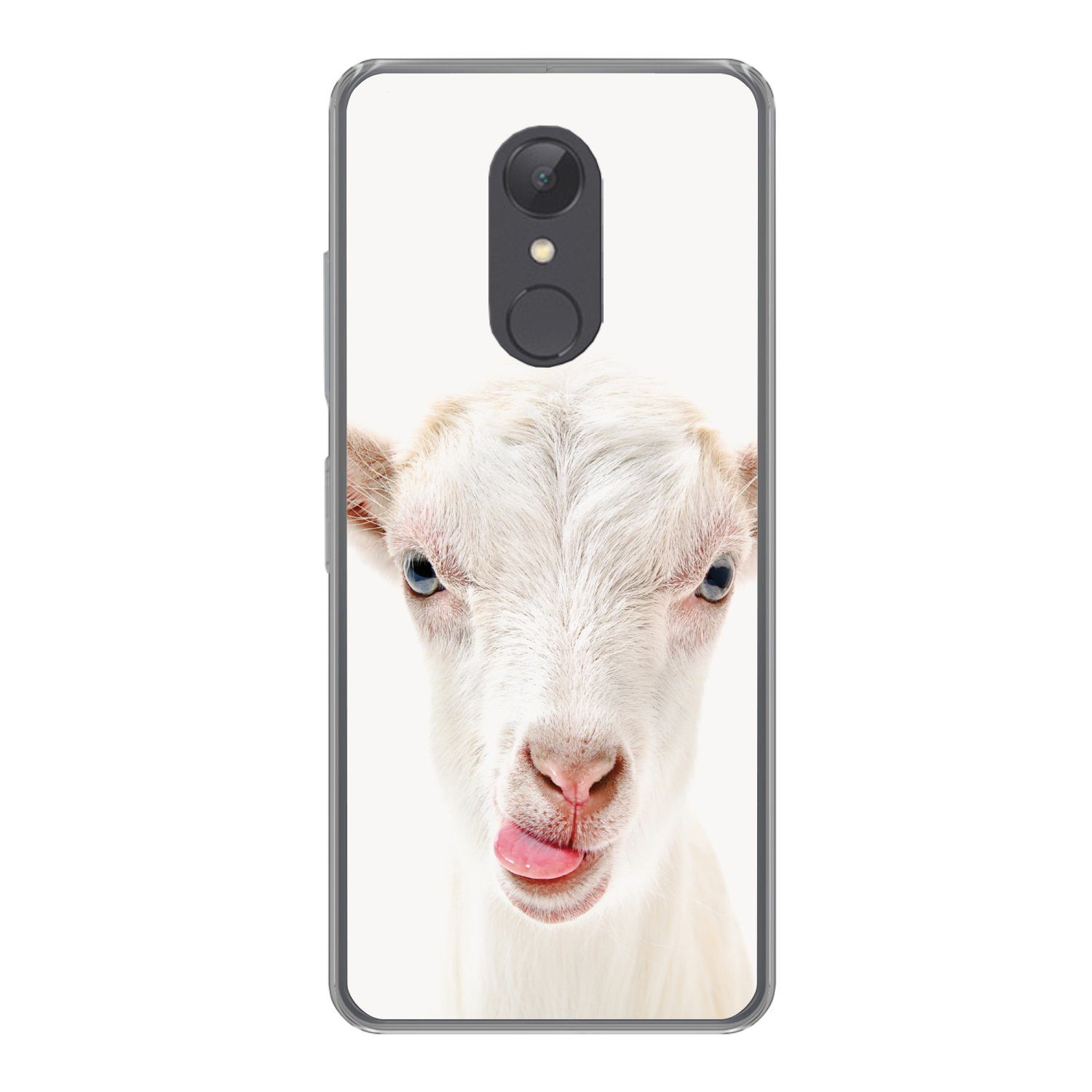 Dieses Porträt einer Ziege würde gut in das Babyzimmer passen! Die Ziege ist vor einem weißen Hintergrund abgebildet.Kompatible Geräte | Xiaomi Redmi 5 |