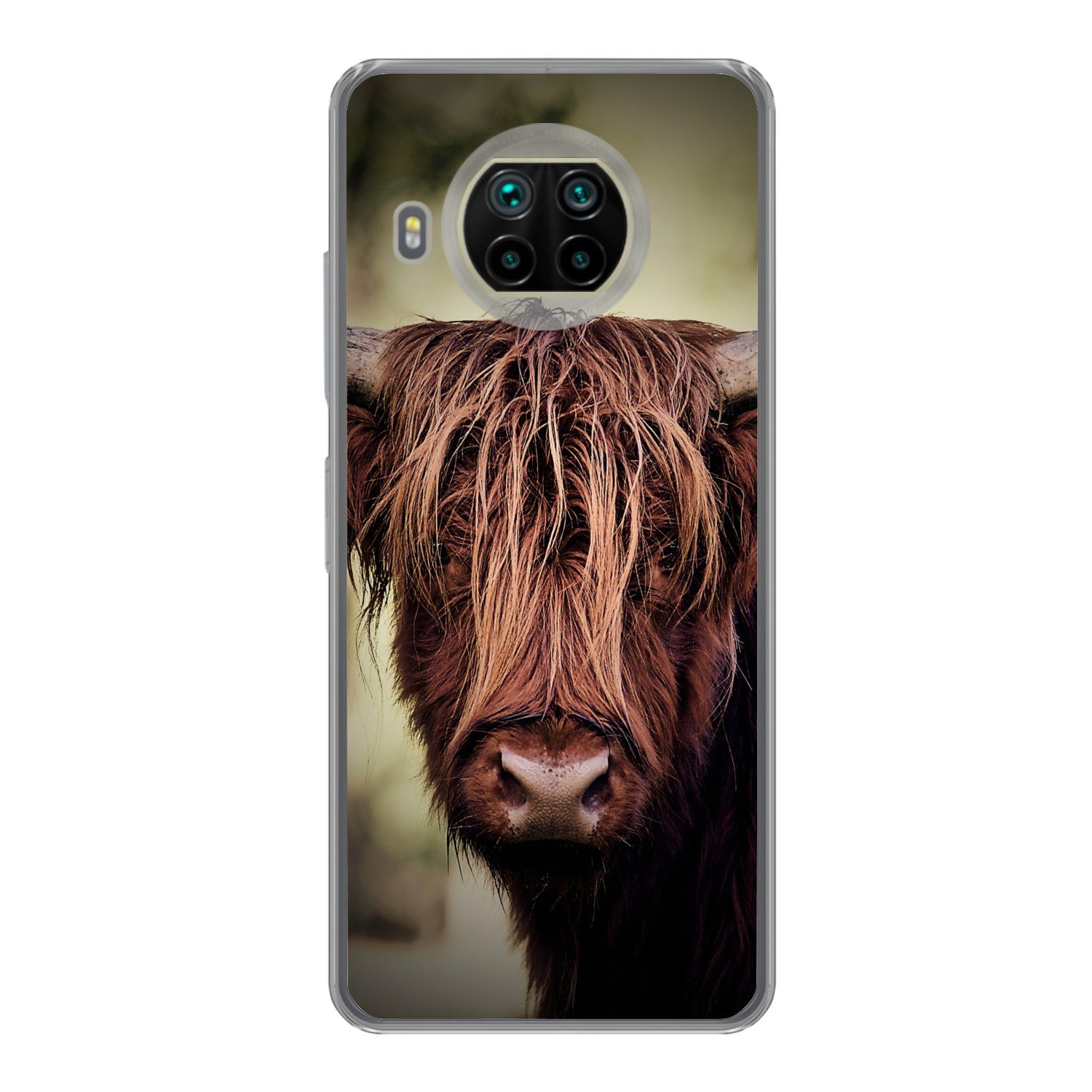 Porträt eines schottischen Highlanders in dunkler Umgebung. Das Tier wird in begrenztem Umfang beleuchtet.Kompatible Geräte | Xiaomi Mi 10T Lite 5G |