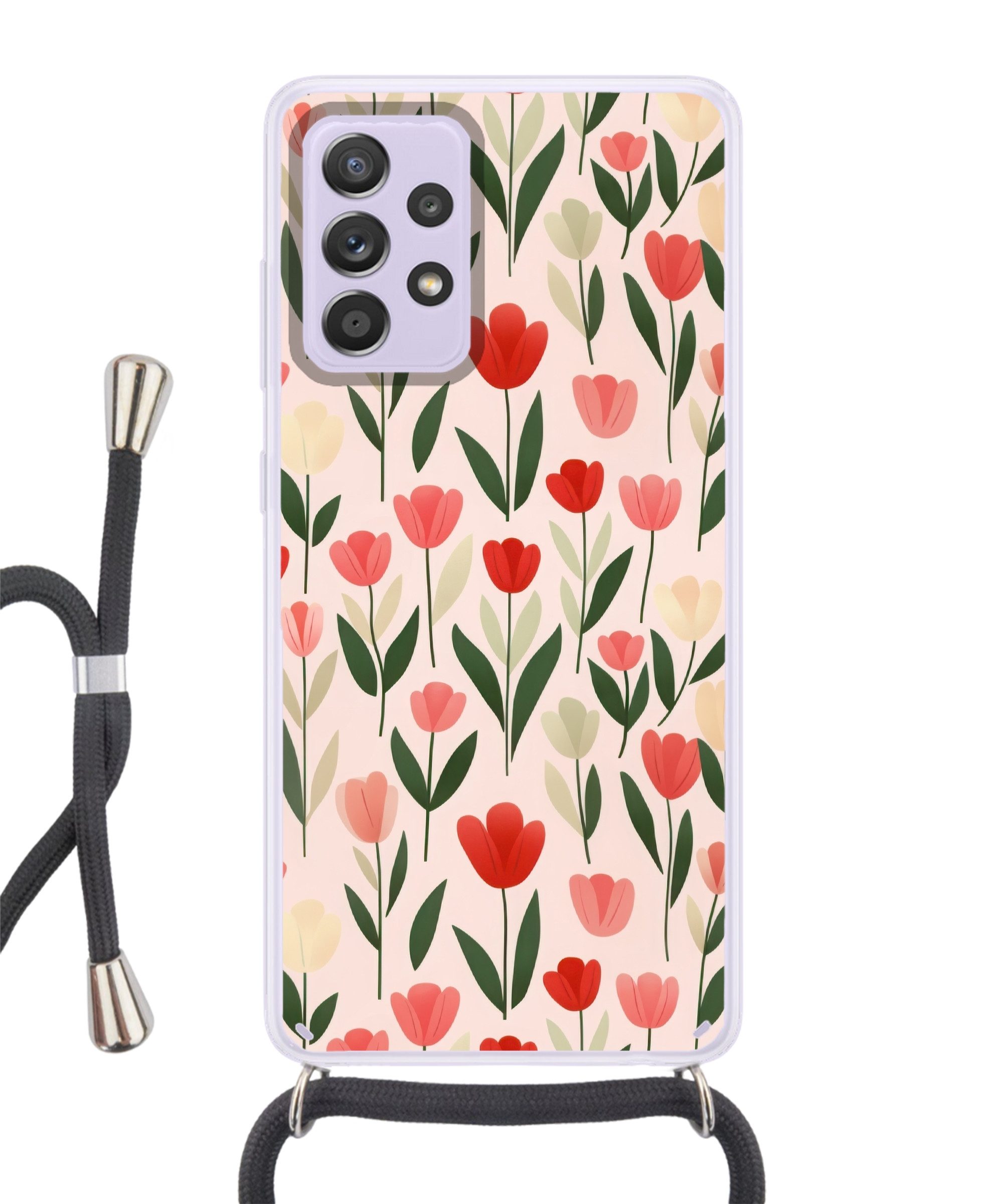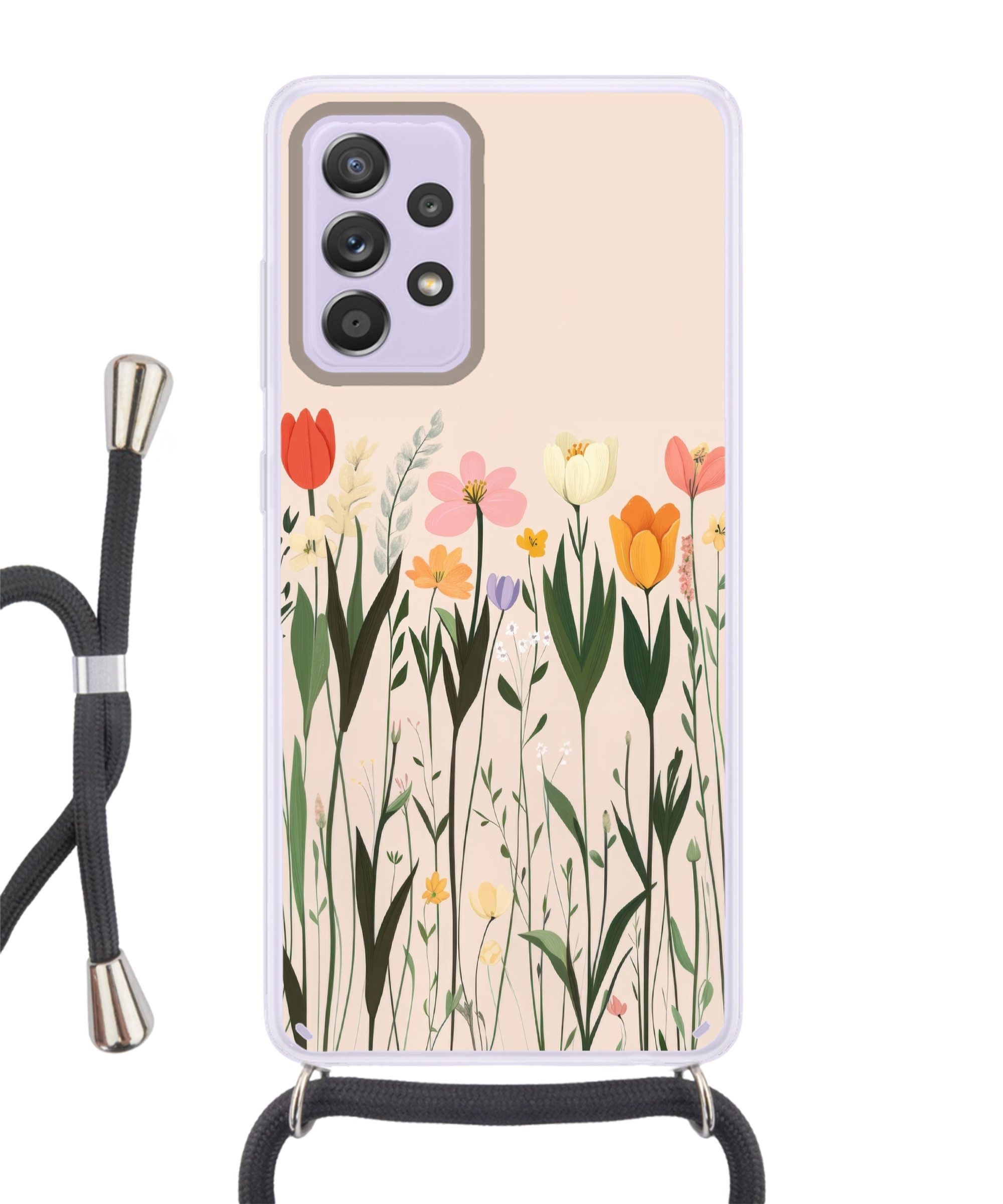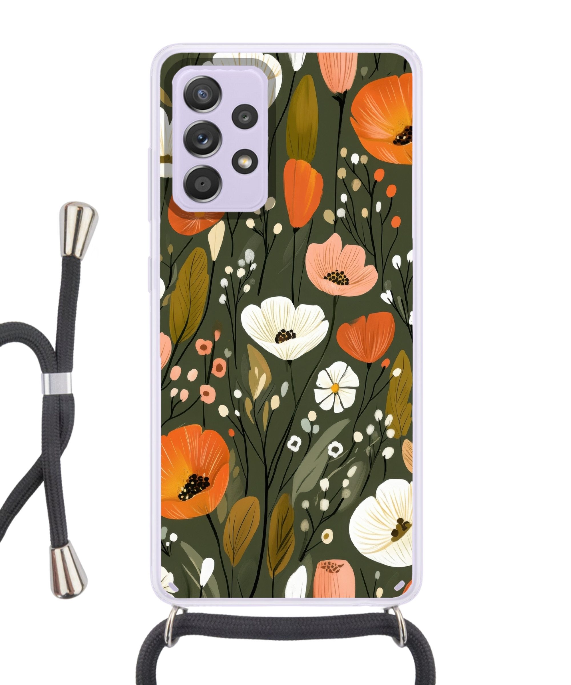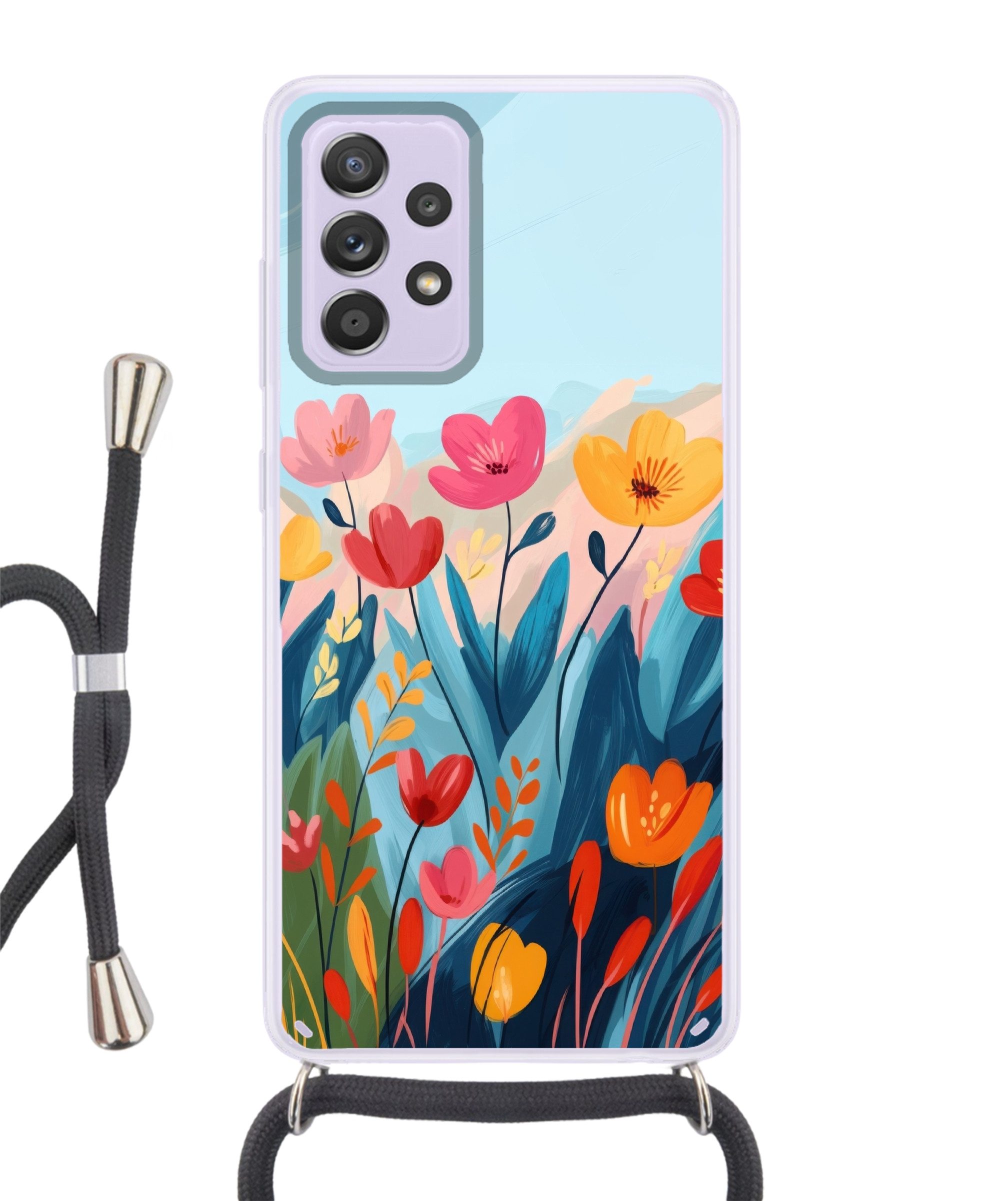 MuchoWow Handyhülle für Samsung Galaxy A53 5G Illustration - Blumen - Farbenfroh, Tragbare Handyhüllen mit Kette zum umhängen, Handykette Handyband
