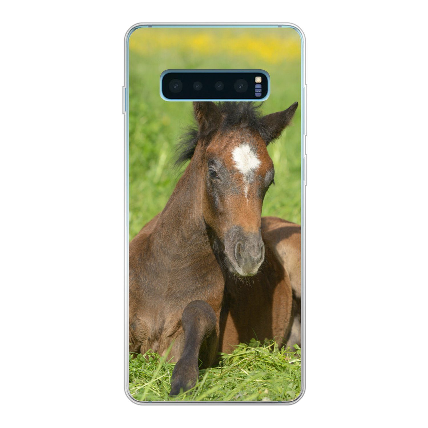 Ein Pferd liegt im Gras. Die Sonne wirft ihr Licht auf das Tier.Kompatible Geräte | Samsung Galaxy S10 Lite |