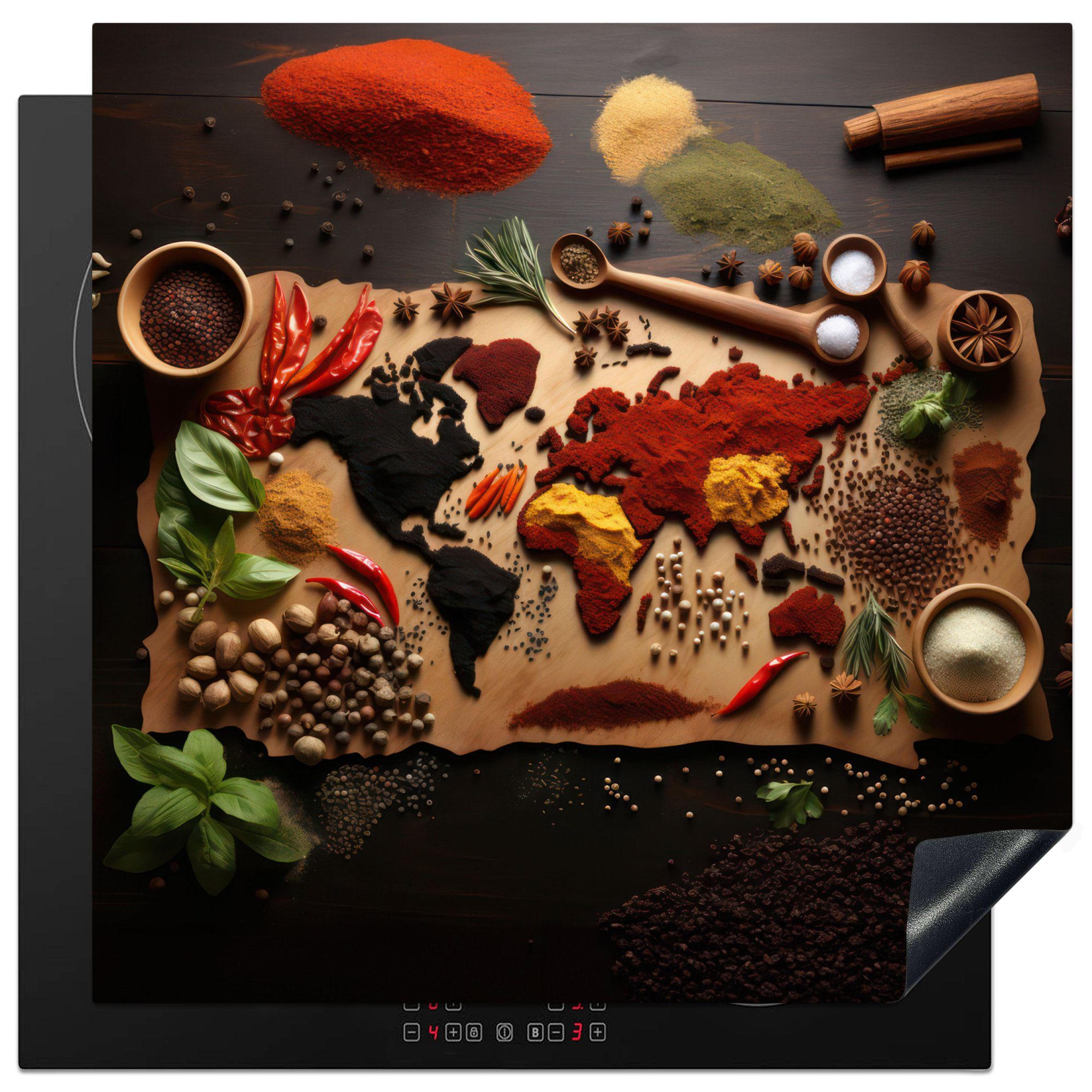 Verschiedene Kräuter und Gewürze in Form einer Weltkarte mit braunem Hintergrund.Farbe | Karte - Kräuter |
