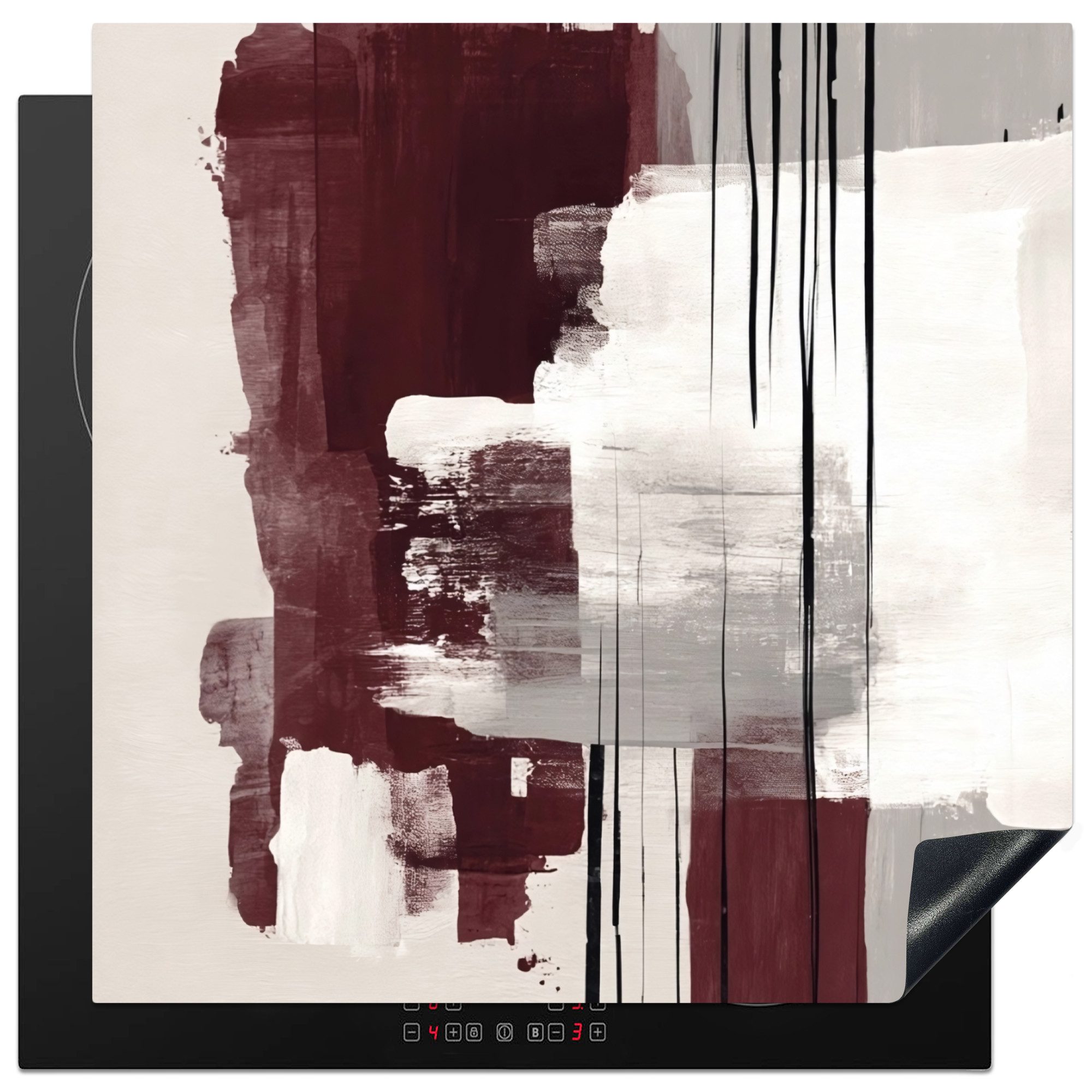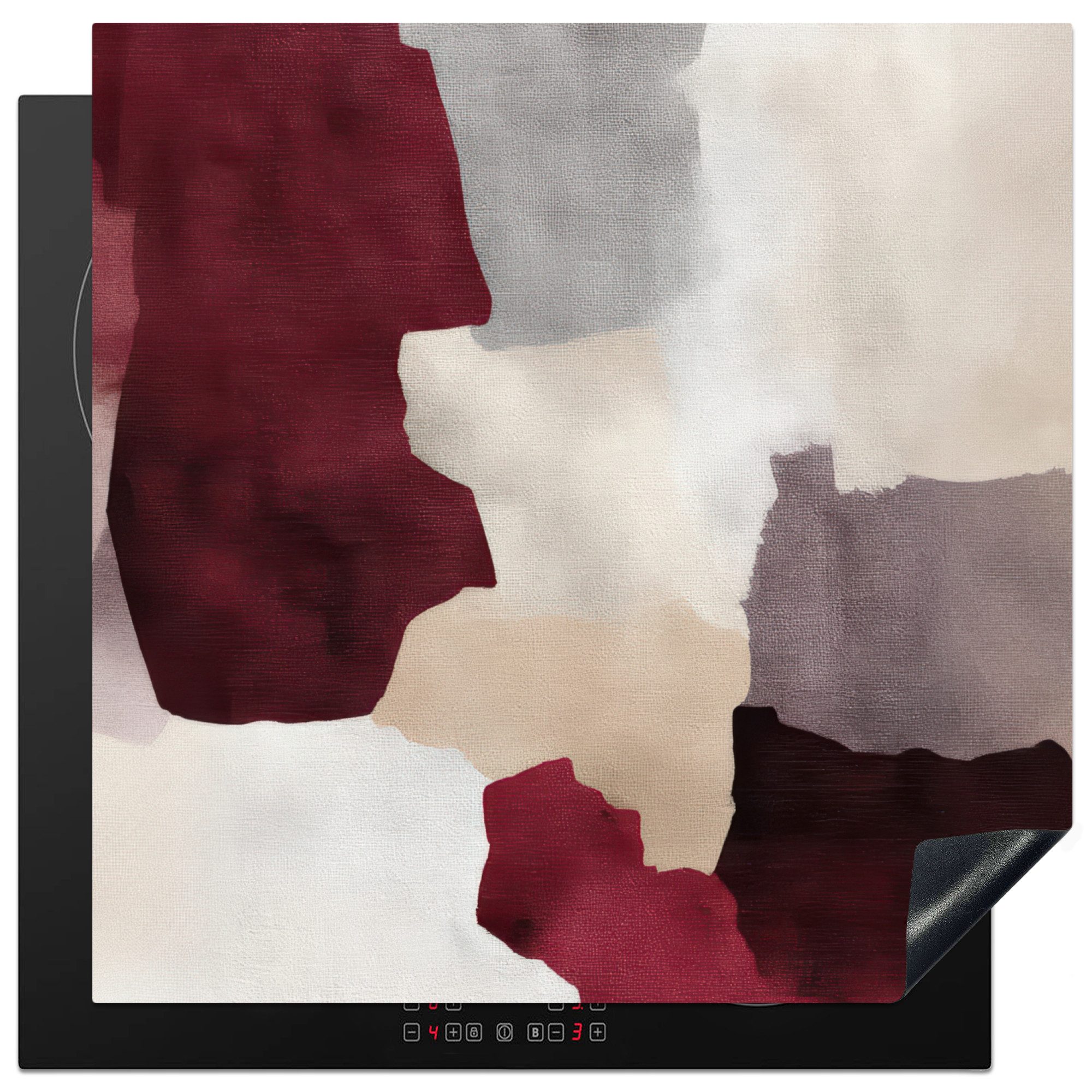Eine abstrakte Komposition aus sich sanft überlagernden Farbflecken in Burgunderrot, Grau, Beige und Weiß. Die Flecken haben einen fließenden, organischen Charakter.