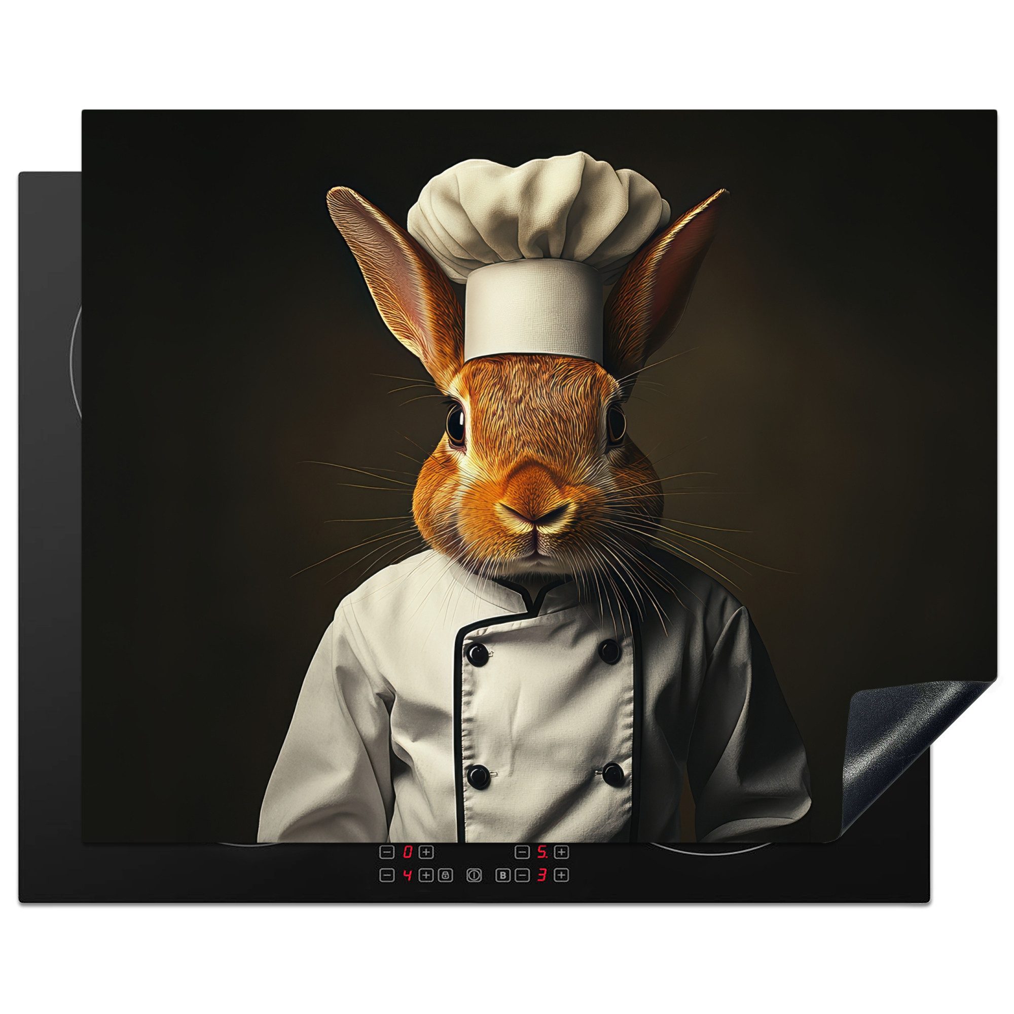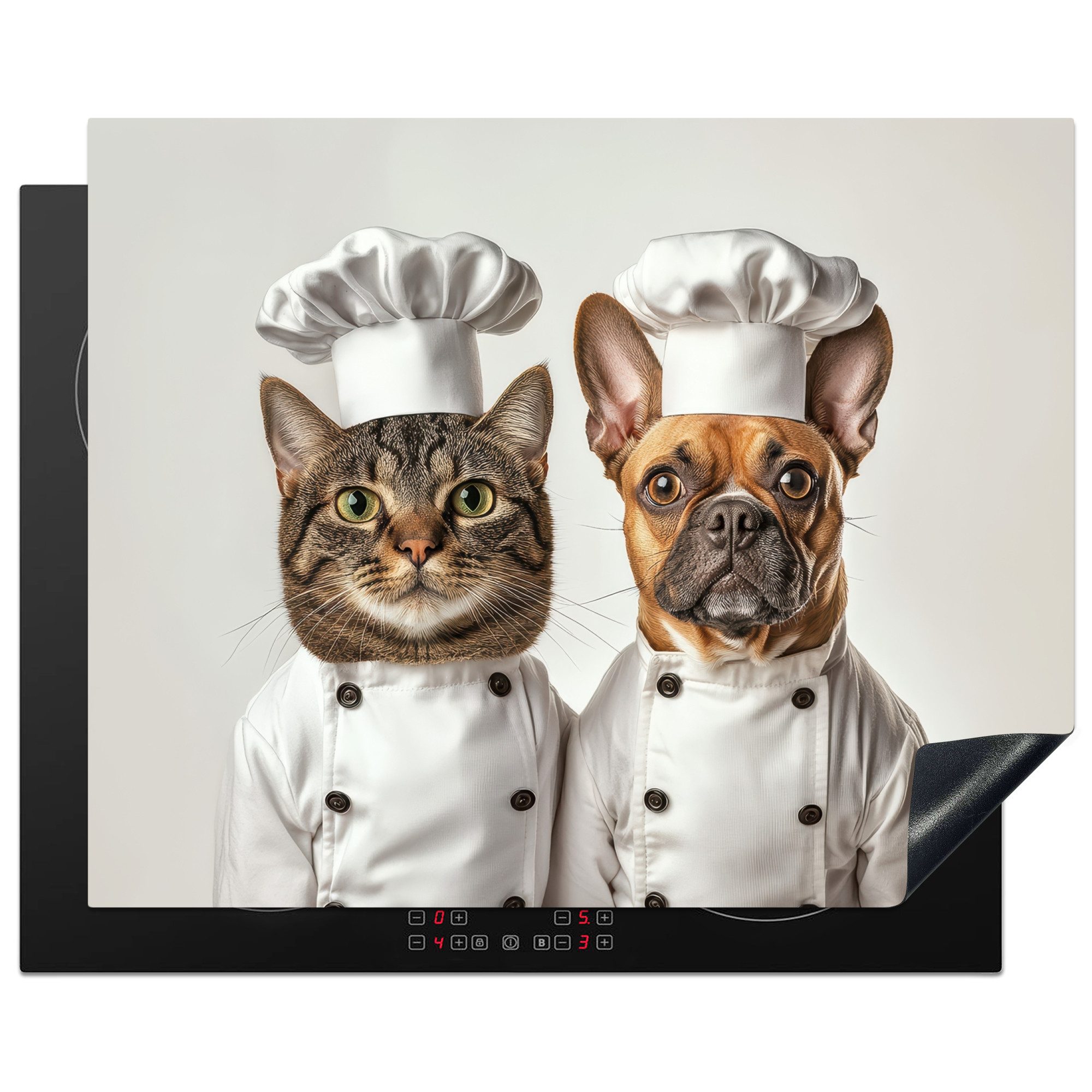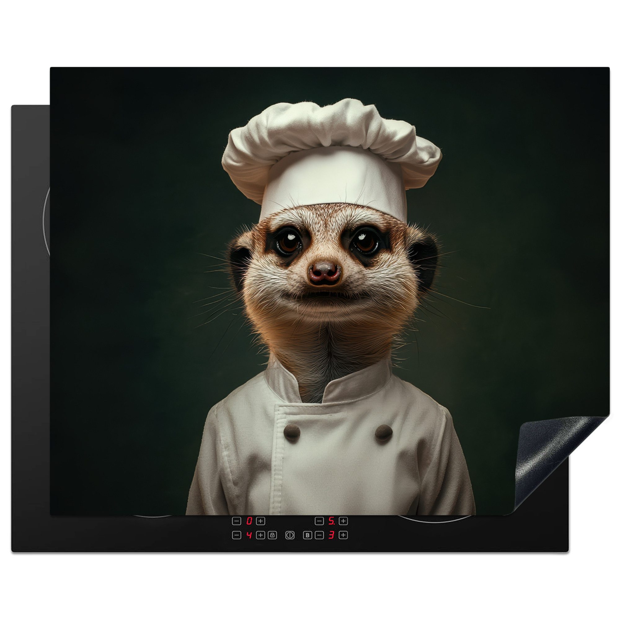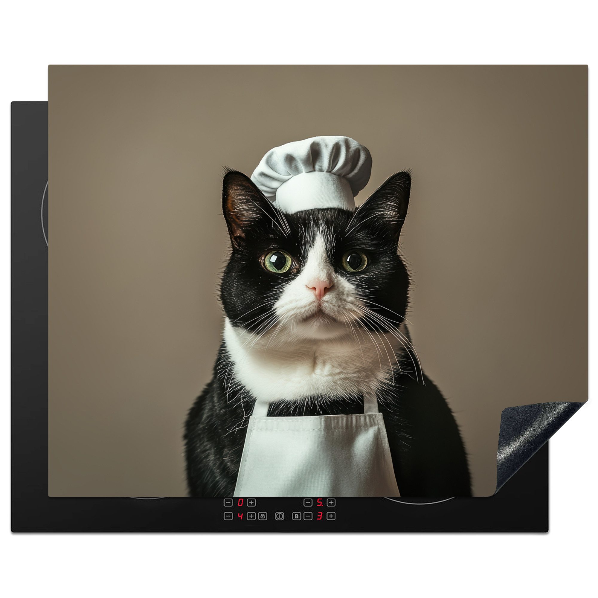 Ein Tiger mit leuchtend orangefarbenen und schwarzen Streifen trägt eine weiße Kochmütze und eine schicke Kochjacke. Sein intensiver Blick und seine kraftvolle Präsenz machen ihn zu einem einzigartigen Chefkoch.Farbe | Tiger - kochen |
