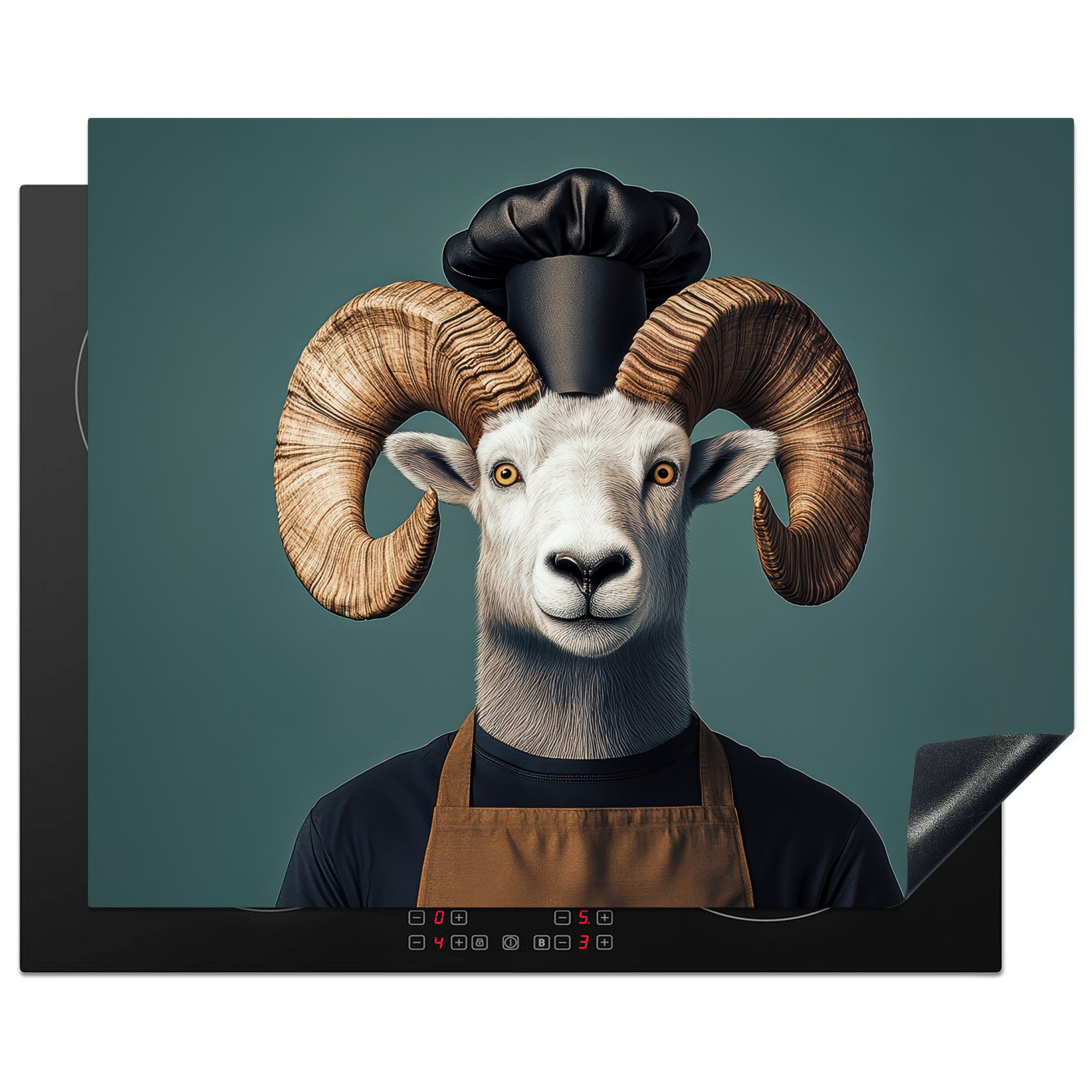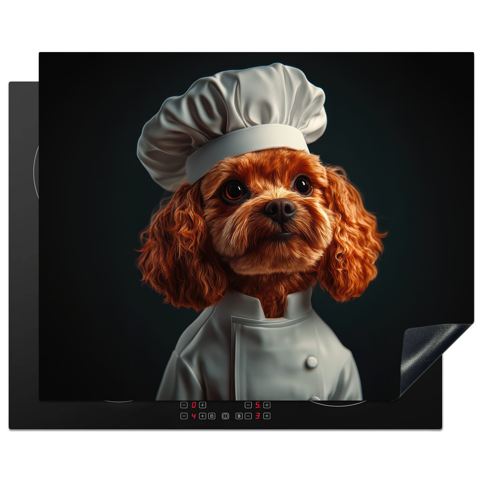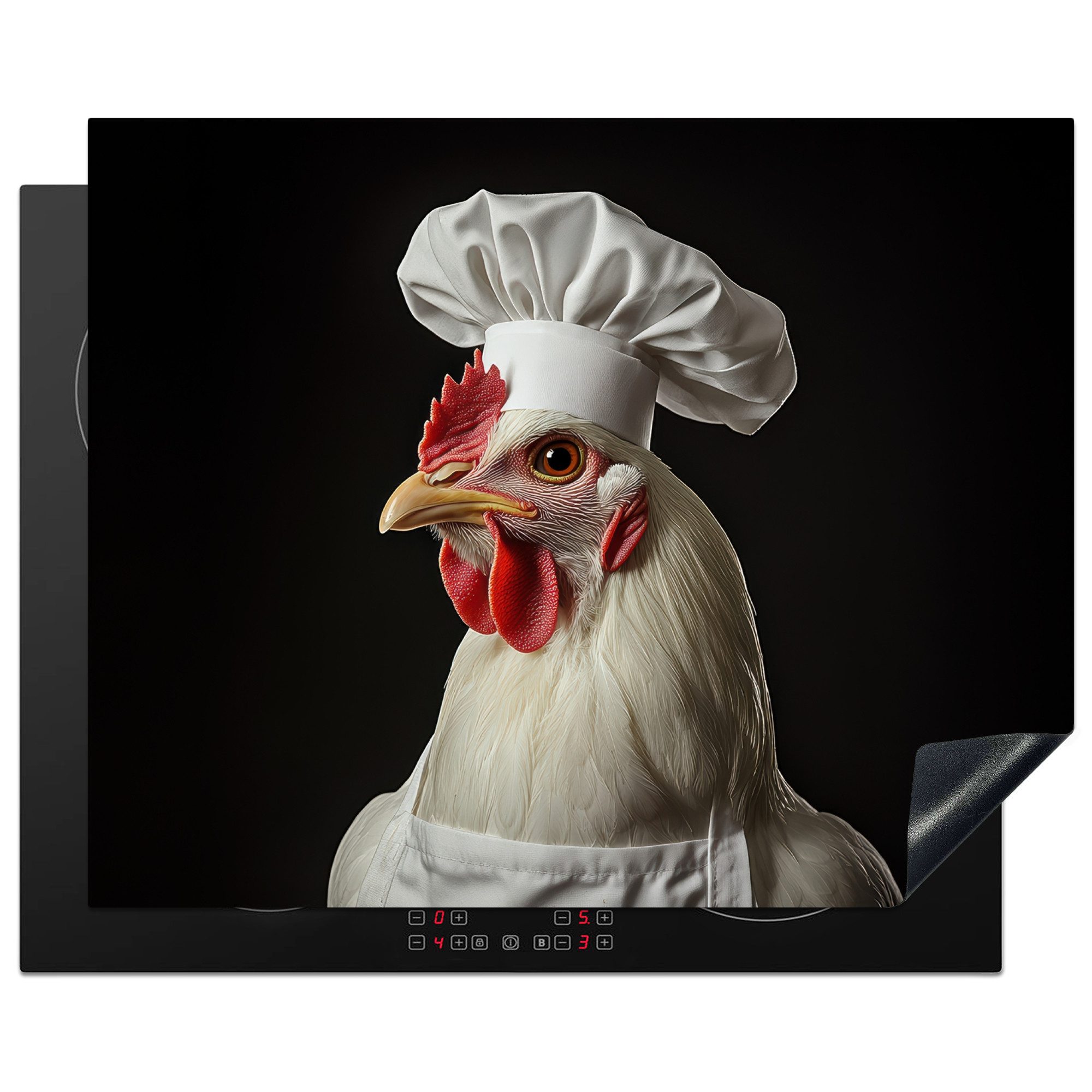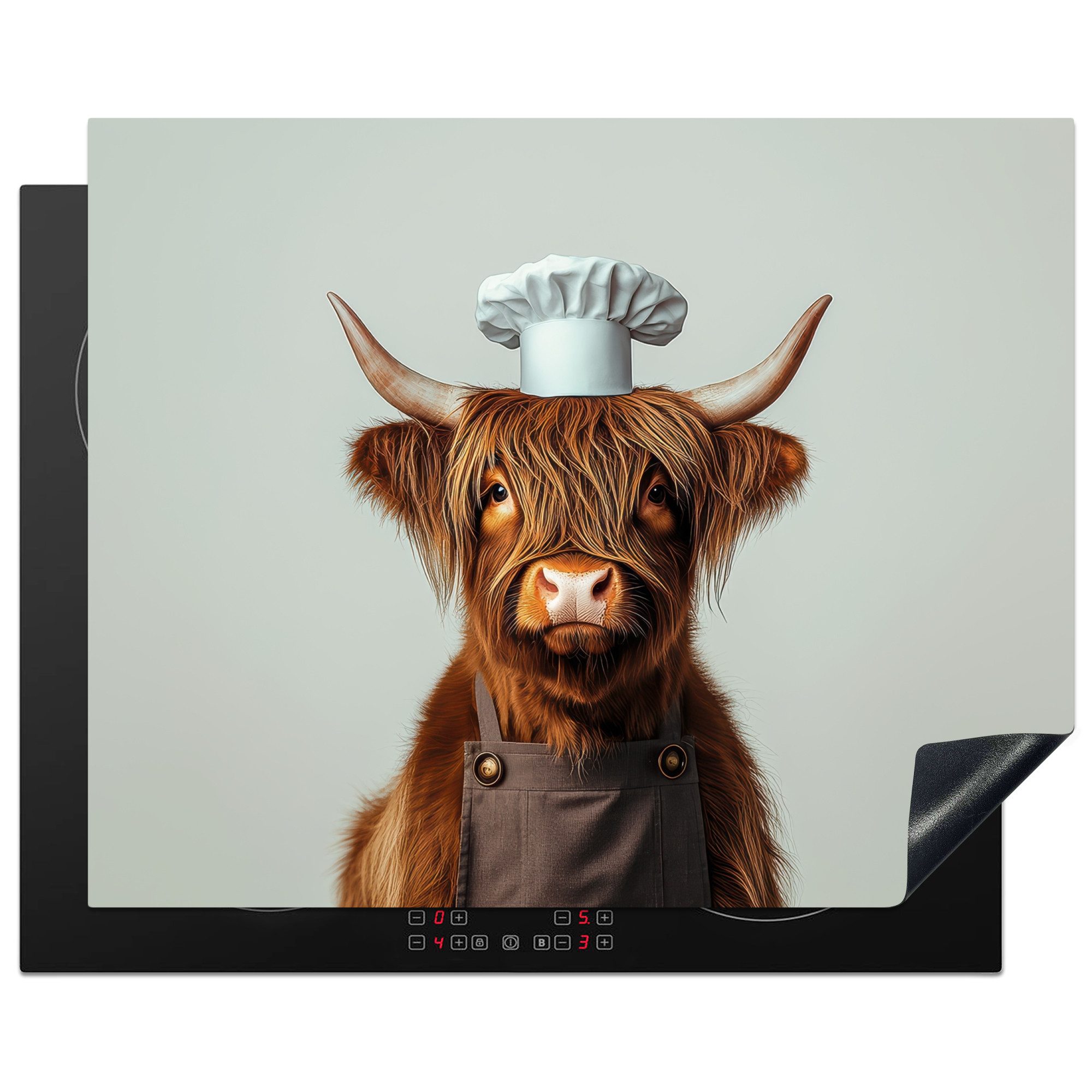 Ein Tiger mit leuchtend orangefarbenen und schwarzen Streifen trägt eine weiße Kochmütze und eine schicke Kochjacke. Sein intensiver Blick und seine kraftvolle Präsenz machen ihn zu einem einzigartigen Chefkoch.Farbe | Tiger - kochen |
