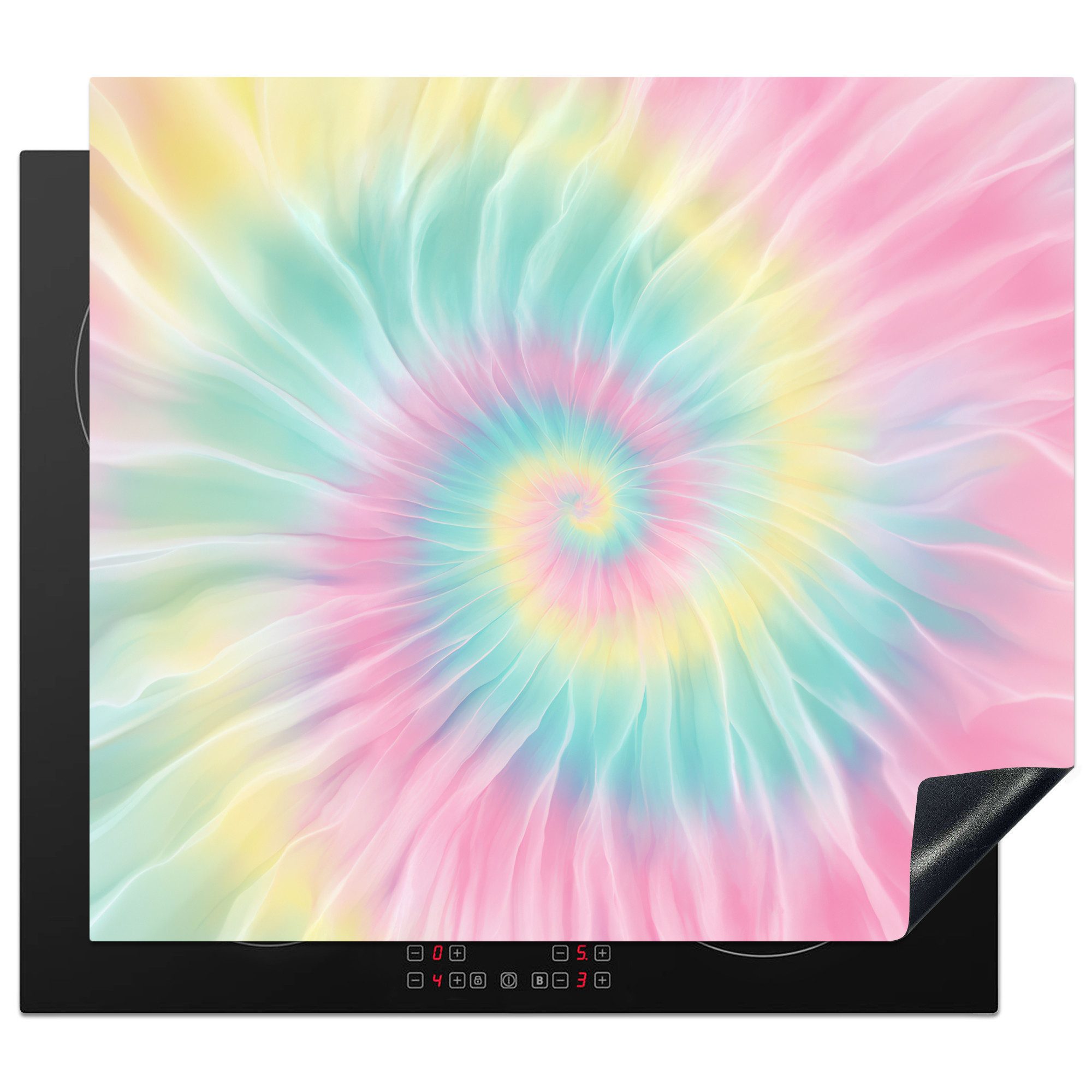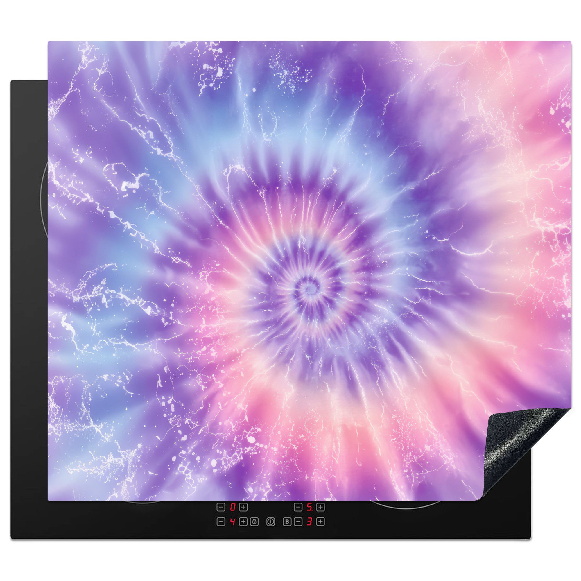 Eine sanfte Spirale aus Pastellfarben wie helles Lila, Rosa und Blau. Das Bild hat ein verträumtes und ätherisches Aussehen mit einem marmorartigen Effekt.