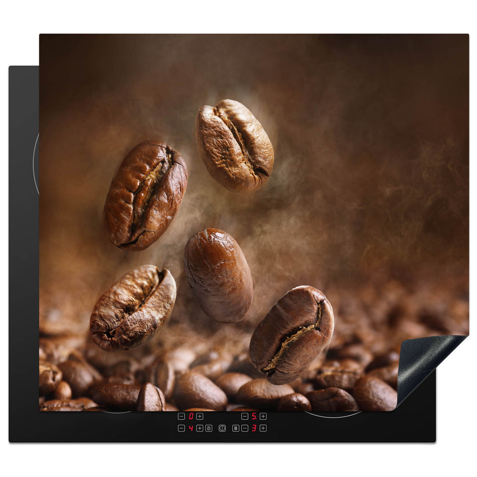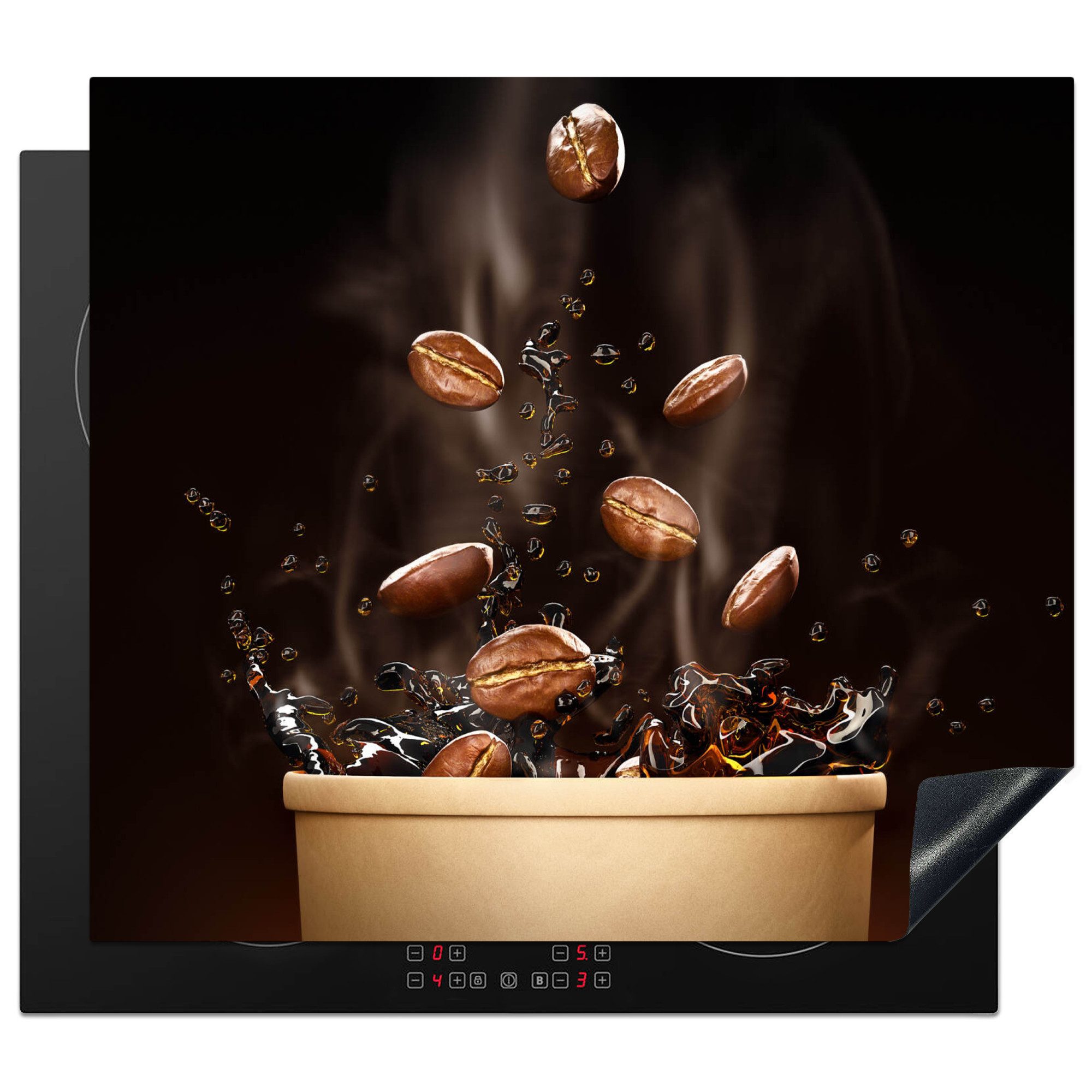 Ein Bild von Kaffeebohnen, die in eine Tasse Kaffee fallen.Farbe | Schwarz - Kaffee |
