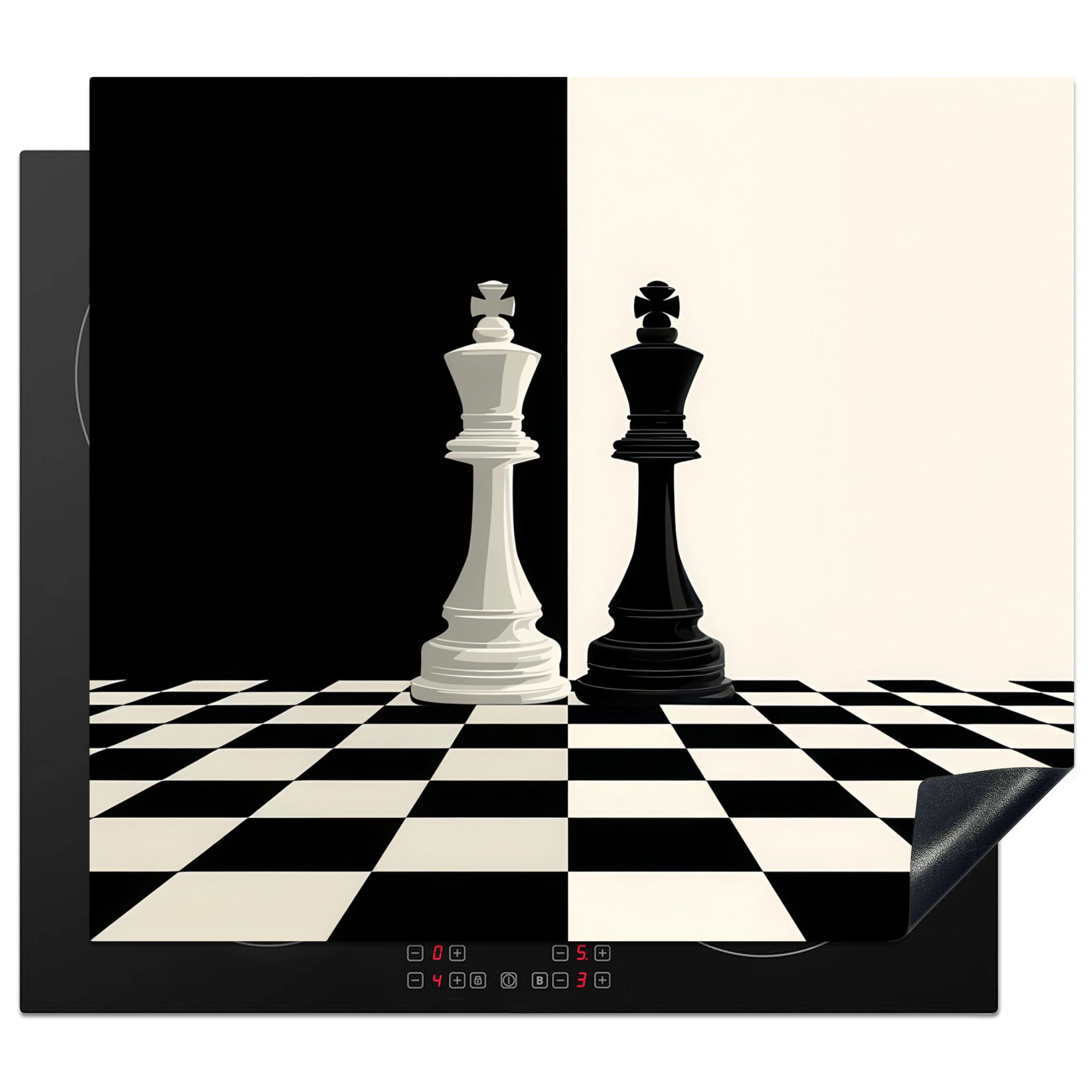 Zwei Könige - ein weißer und ein schwarzer - stehen sich auf einem schwarz-weiß karierten Schachbrett mit geteiltem Hintergrund gegenüber.