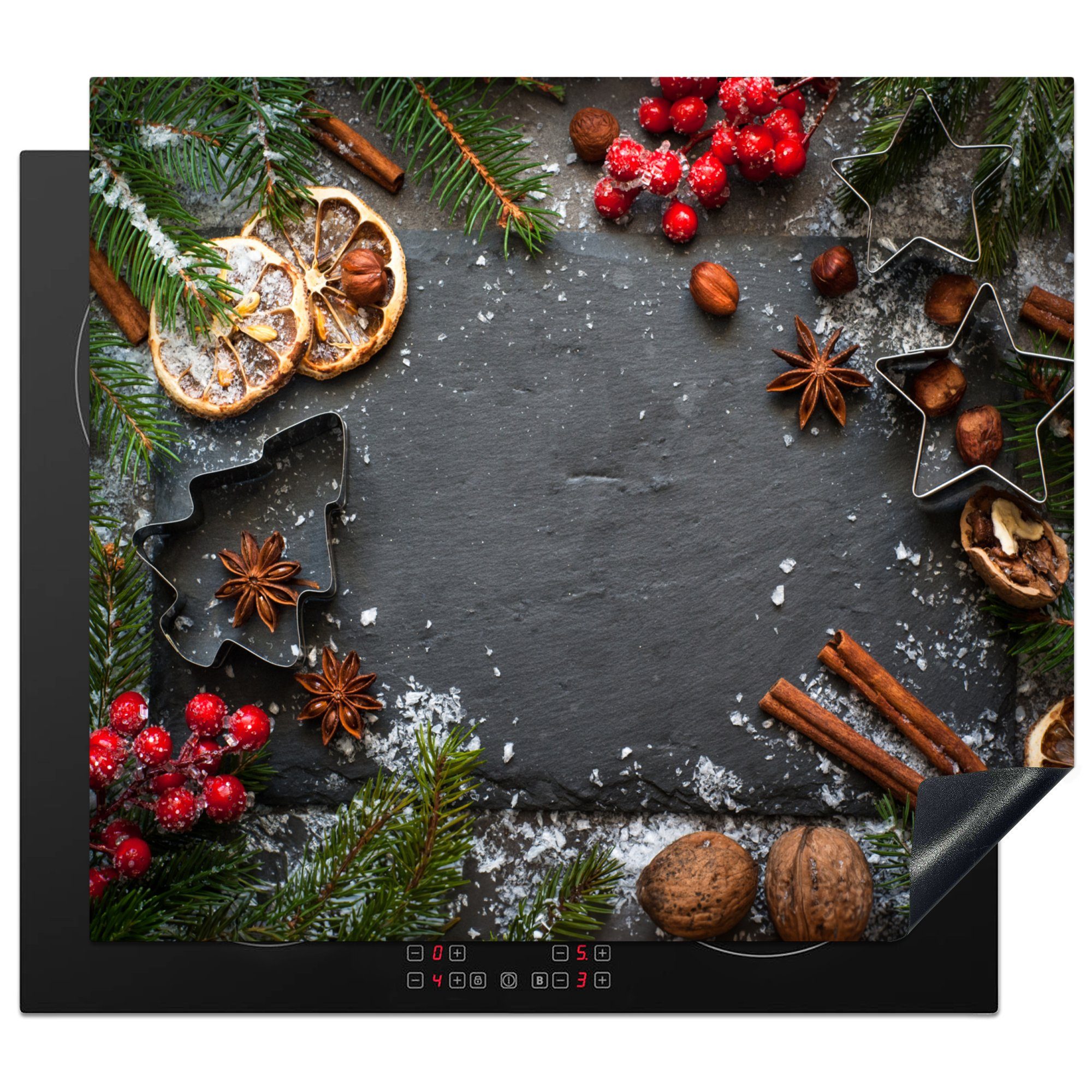 Druck eines Stilllebens mit Gewürzen und Trockenfrüchten.Farbe | Grau - Rot |