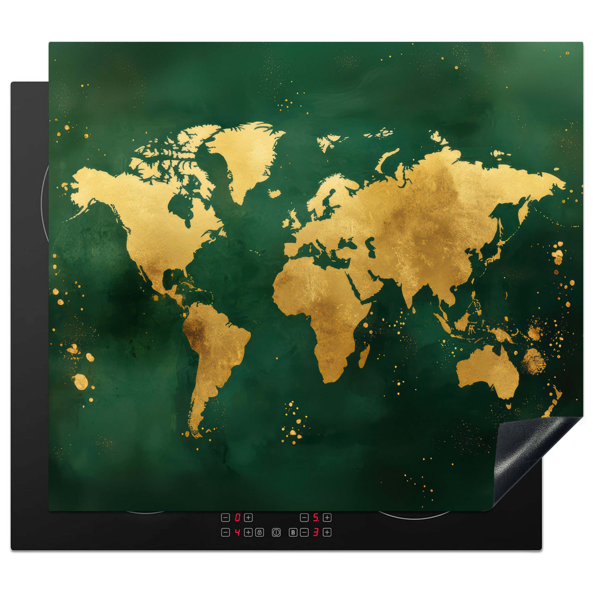 Goldene Weltkarte auf dunkelgrünem Hintergrund.Farbe | Weltkarte - Grün |