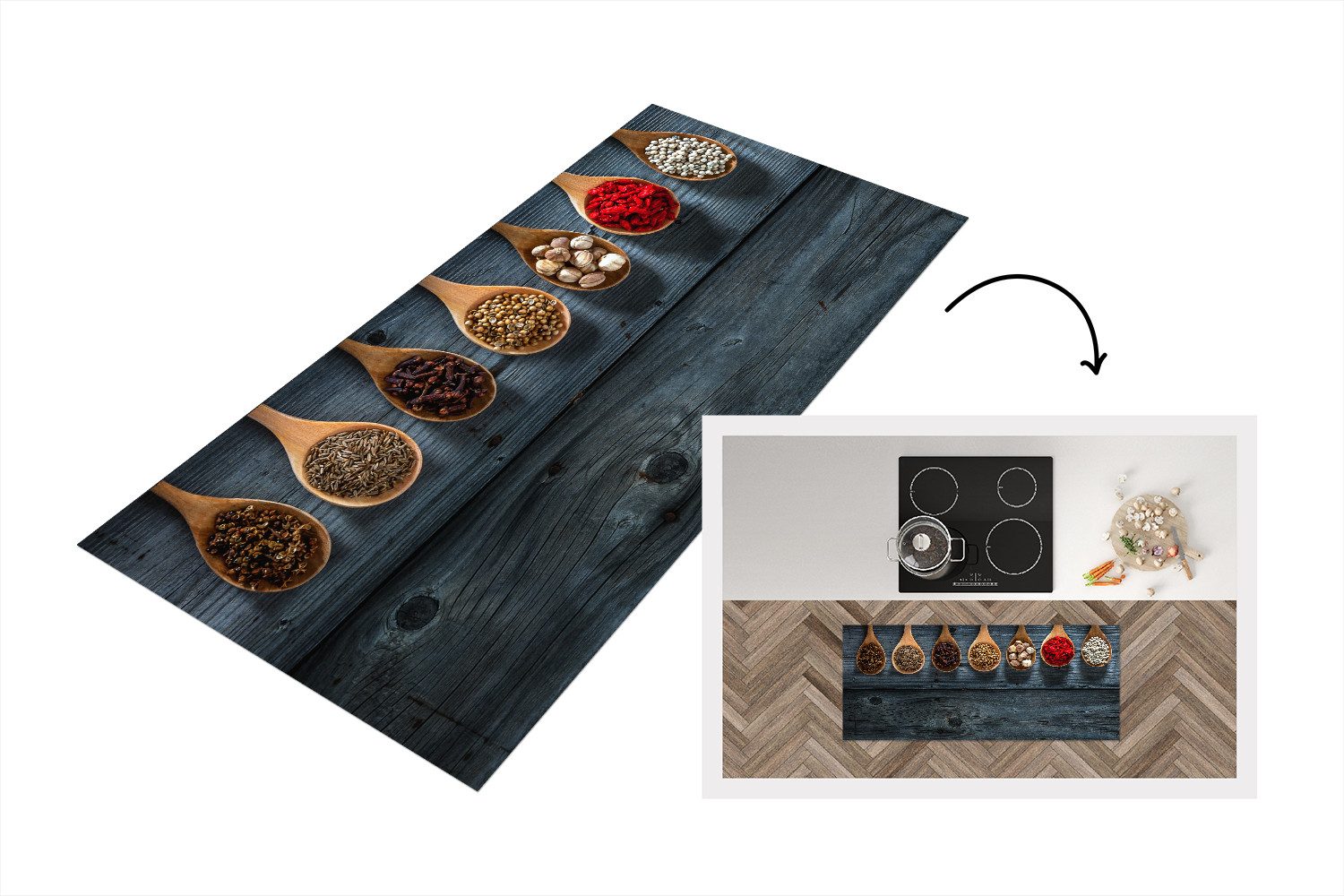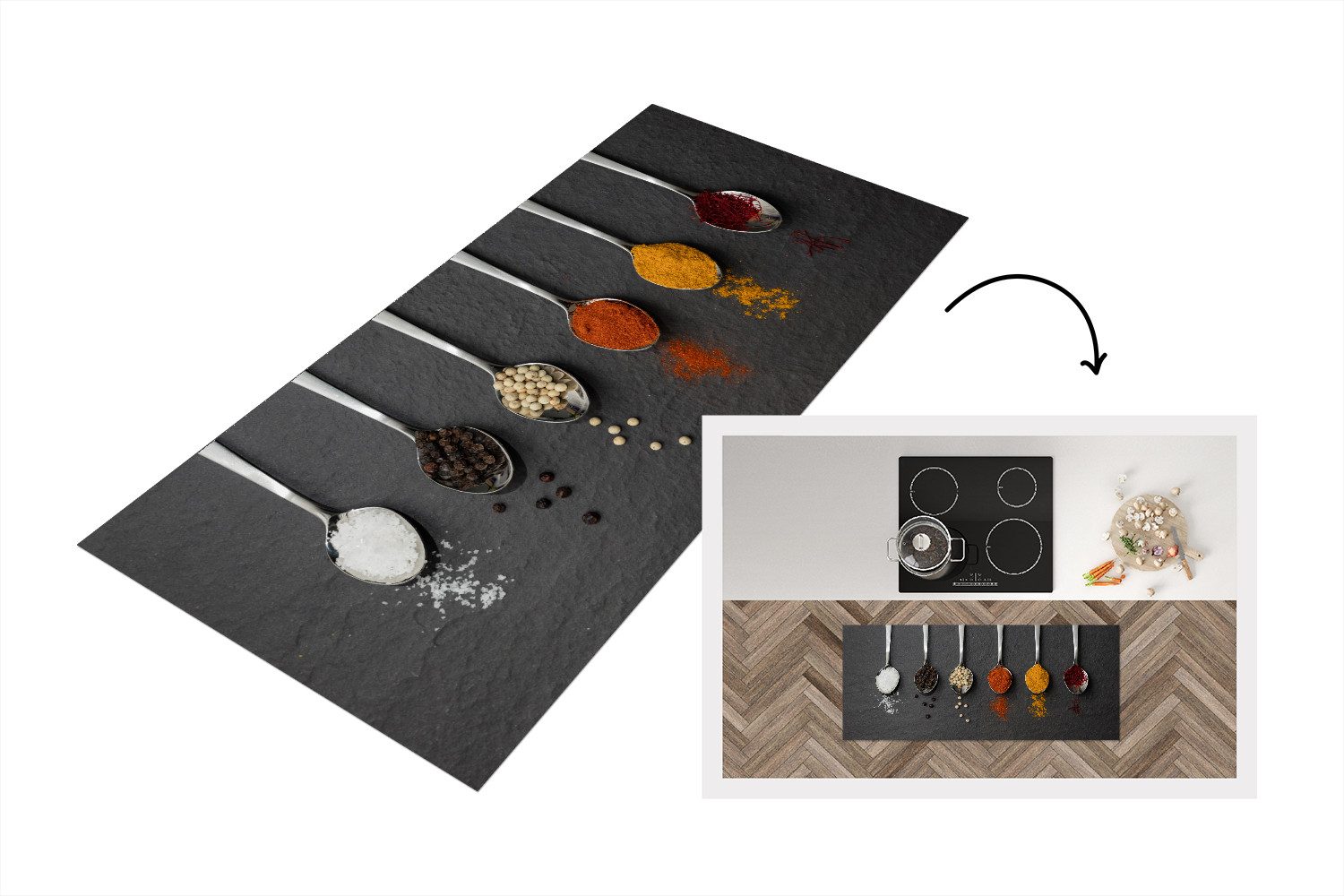 Verleihen Sie Ihrer Küche nicht nur Schutz, sondern auch Stil. Unser hochwertiger Küchenläufer aus robustem Vinyl ist die perfekte Ergänzung für jede moderne Küche. Er schützt empfindliche Böden zuverlässig vor Schmutz, Feuchtigkeit und Kratzern und bleibt dank der rutschfesten Unterseite sicher an Ort und Stelle, selbst bei viel Bewegung.